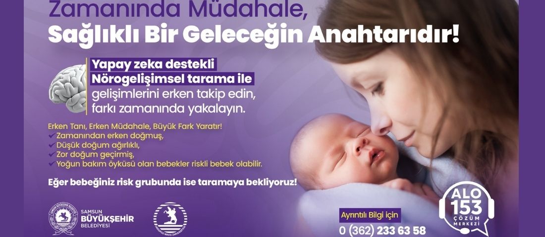 Samsun Büyükşehir Belediyesi, aile yapısının güçlendirilmesi ve sağlıklı nesillerin yetiştirilmesi adına hayata geçirdiği örnek projelere bir yenisini daha ekliyor. Ondokuz Mayıs Üniversitesi iş birliği ile yürütülen “Riskli Bebekte Erken Müdahale” projesi kapsamında bebeklerin nörogelişimsel gelişimi yapay zeka destekli sistemlerle erken dönemde takip edilebiliyor. Yapay zeka tabanlı nörogelişimsel tarama sistemi sayesinde riskli bebeklerin gelişimsel takibi daha hassas bir şekilde gerçekleştiriliyor. Gelişiminde risk görülen bebekler uzmanlara yönlendirilerek erken müdahale programına dahil ediliyor. Ailelere bebeklerinin gelişimini destekleyecek özel materyaller içeren eğitim kitleri hediye ediliyor. Aynı zamanda ev ziyaretleriyle birebir eğitim desteği sağlanıyor.