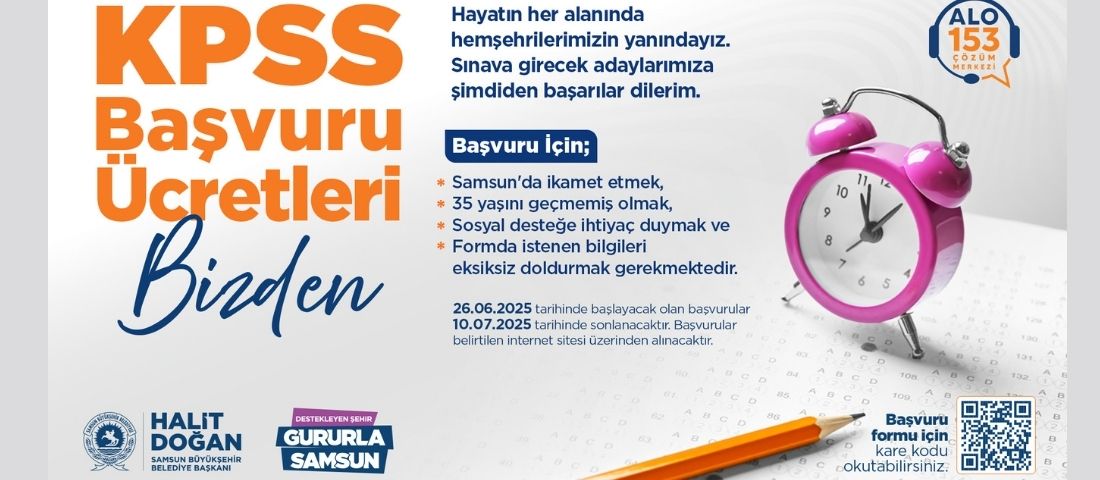Gençlerin eğitim ve kariyer yolculuklarına her zaman destek veren Samsun Büyükşehir Belediyesi, Kamu Personeli Seçme Sınavı (KPSS) başvuru sürecinde de gençlerin yanında olmaya devam ediyor. Bu kapsamda belirli şartları taşıyan gençlerin 2025 KPSS başvuru ücretleri Samsun Büyükşehir Belediyesi tarafından karşılanıyor.