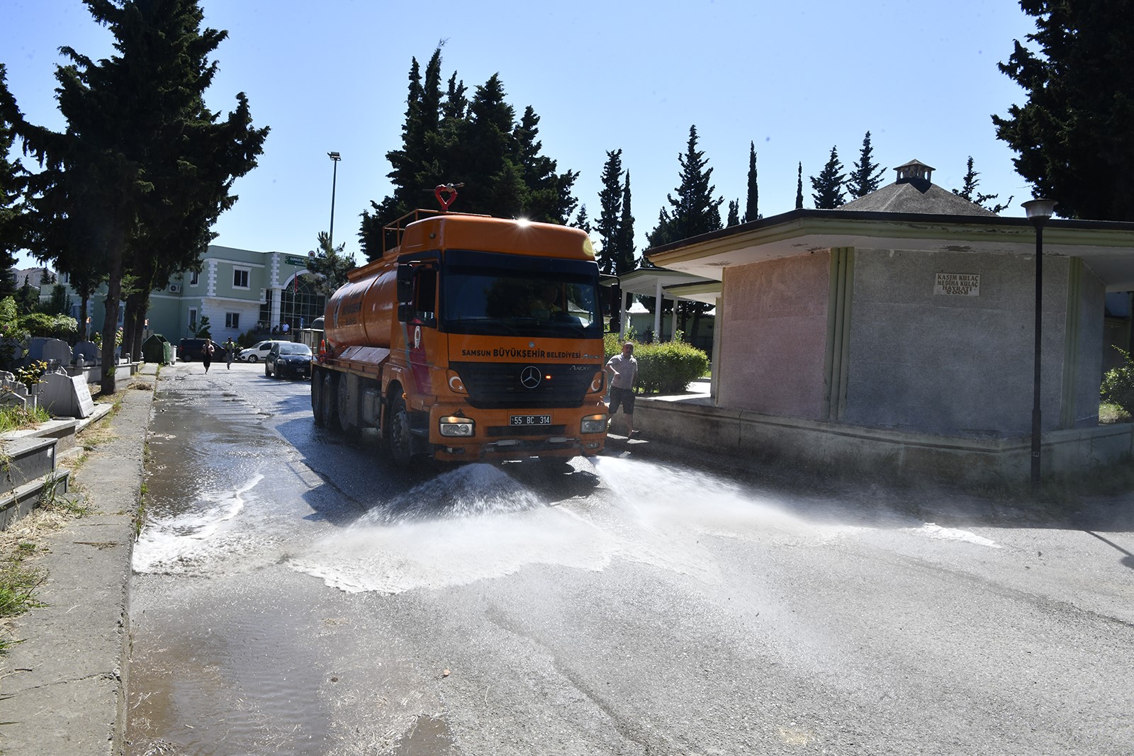 Samsun Büyükşehir Belediyesi tarafından vatandaşların Kurban Bayramı nedeniyle mezarlık ziyaretlerini daha rahat ve huzurlu bir şekilde gerçekleştirmeleri için Kıranköy, Derecik ve Asri Mezarlıklarda temizlik, bakım ve onarım çalışmaları yapıldı. Büyükşehir Belediye Başkanı Mustafa Demir, “Bayram öncesi ve bayram gününde mezarlık ziyareti yapan vatandaşlarımızın gönül rahatlığıyla yakınlarının kabirlerini ziyaret etmeleri için ekiplerimiz gerekli tüm çalışmaları gerçekleştirdi” dedi.Samsun Büyükşehir Belediyesi belirli aralıklarla gerçekleştirdiği mezarlıkların bakım, onarım ve temizlik çalışmalarını Kurban Bayramı dolayısıyla yoğunlaştırdı. Çevre Koruma ve Kontrol Dairesi Başkanlığı ile Mezarlıklar Müdürlüğü işbirliğinde ekipler mezarlıklarda ot temizliği, budama, yürüyüş yollarının bakımı ile ilaçlama çalışması gerçekleştirdi.‘TEMİZLİK VE İLAÇLAMA YAPILDI’Yapılan çalışma ile ilgili bilgi veren belirten Çevre Koruma ve Kontrol Dairesi Başkanlığı Temizlik İşleri Sorumlusu Muhammet Fatih Yıldız, “Mezarlıklarımızda rutin bir şekilde, belirli aralıklarla gerçekleştirdiğimiz çalışmalarımızı Kurban Bayramı vesilesiyle yoğunlaştırmış bulunuyoruz. Mezarlıklar Müdürlüğü personeli ile iş birliği halinde mezarlıklarımızda temizlik ve bakım çalışmalarımızı yaptık. Ekiplerimiz tarafından mezarlıklardaki otları temizliyor, mezarlıklar ilaçlanıyor, mezarlık yolları süpürülüp siliniyor. Kıranköy, Derecik ve Asri mezarlıklarımızda tüm ekipman ve personelimiz ile çalışmalarımızı aralıksız sürdürmekteyiz” dedi.‘ÇALIŞMALAR TAMAMLANDI’Vatandaşların kabir ziyaretlerini daha rahat ve huzurlu bir şekilde gerçekleştirmesi için ekiplerin tüm çalışmaları yaptıklarını belirten Büyükşehir Belediye Başkanı Mustafa Demir, “Bayram öncesi ve bayram gününde mezarlık ziyareti yapan vatandaşlarımızın gönül rahatlığıyla yakınlarının kabirlerini ziyaret etmeleri için ekiplerimiz gerekli tüm çalışmaları gerçekleştirdi. Ebediyete intikal eden bütün merhum ve merhumelere Allah rahmet eylesin. Bu vesile ile tüm vatandaşlarımızın Kurban Bayramlarını kutluyor, güzel ve mutlu bir bayram geçirmelerini diliyorum” diye konuştu.Köksal ÖNER