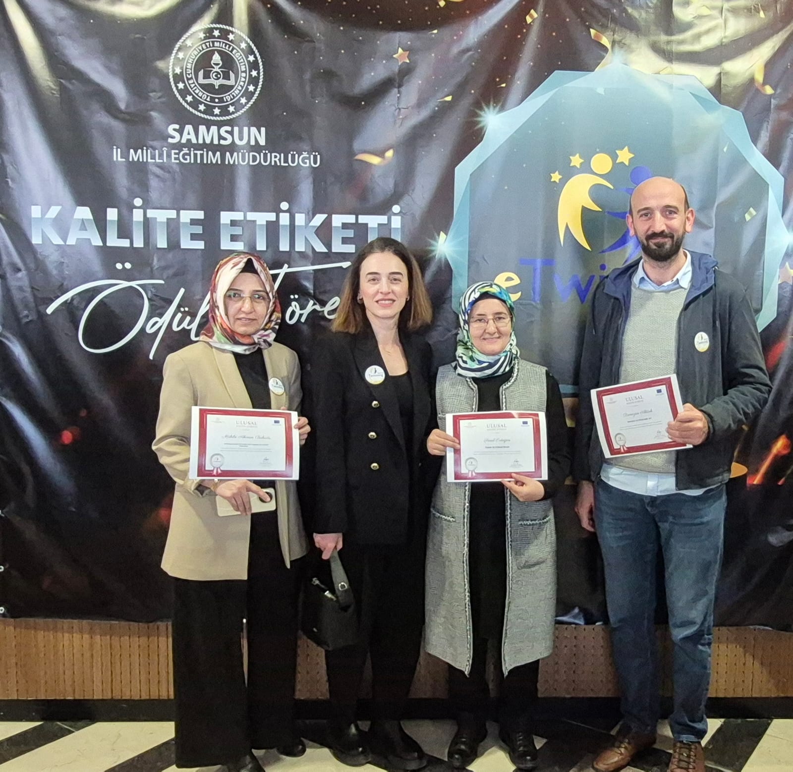 Canik Cahit Zarifoğlu İlkokulu Anasınıfı öğretmeni Muhibe Akman Bahadır “Growing Together in Culture and Language for a Richer Education” (Daha Zengin Bir Eğitim İçin Kültür ve Dilde Birlikte Büyümek) 2/D Sınıfı öğretmeni Şenel Erdoğan “Game in School Heart” (Okul Kalbinde Oyun) ve 3/D sınıfı öğretmeni Ramazan Aktürk “Journey to STEM And Art” (STEM ve Sanata Yolculuk) adlı projeleri ile önce ulusal ardından da Avrupa Kalite Etiketi almaya hak kazandılar. Ulusal Destek Servisi ve Samsun İl Milli Eğitim Müdürlüğü organizasyonuyla Atakum Sanat Merkezi’nde gerçekleştirilen belge töreninde tüm ilçelerdeki öğretmenlerle birlikte okulumuz öğretmenleri de hazır bulundu.
