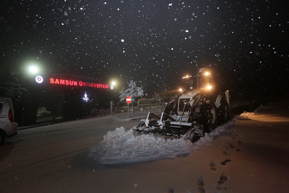 Canik Belediyesi ekipleri, ilçede kar yağışının etkili olduğu bölgelere anında müdahale ediyor.