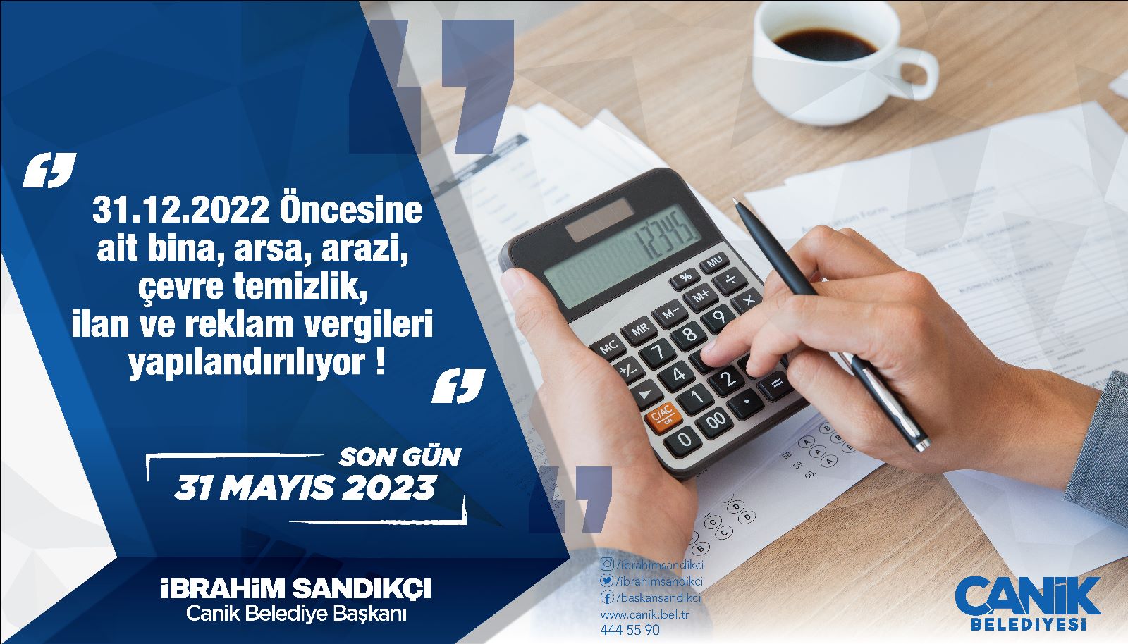 Canik Belediyesi Mali Hizmetler Müdürlüğü tarafından yapılan yazılı açıklamada mükelleflerin 31 Aralık 2022 öncesine ait bina, arsa, arazi, çevre temizlik, ilan ve reklam vergilerini 12 Mart 2023 tarihli 32130 sayılı Resmi Gazete’deyayımlanarak yürürlüğe giren 7440 sayılı ‘Bazı Alacakların Yeniden Yapılandırılması ile Bazı Kanunlarda Değişiklik Yapılması Hakkında Kanun’ hükümleri kapsamında 31 Mayıs 2023 tarihine kadar borçlarını yapılandırabileceği kaydedildi. Mükelleflerin son güne kadar belediye hizmet binasında bulunan tahsilat servisinden veya E-devlet üzerinden gerçekleştireceği işlemlerle 31 Aralık 2022öncesine ait bina, arsa, arazi, çevre temizlik, ilan ve reklam vergilerini yapılandırabileceği ve 48 aya kadar taksit yapma imkânından yararlanabileceği belirtildi.