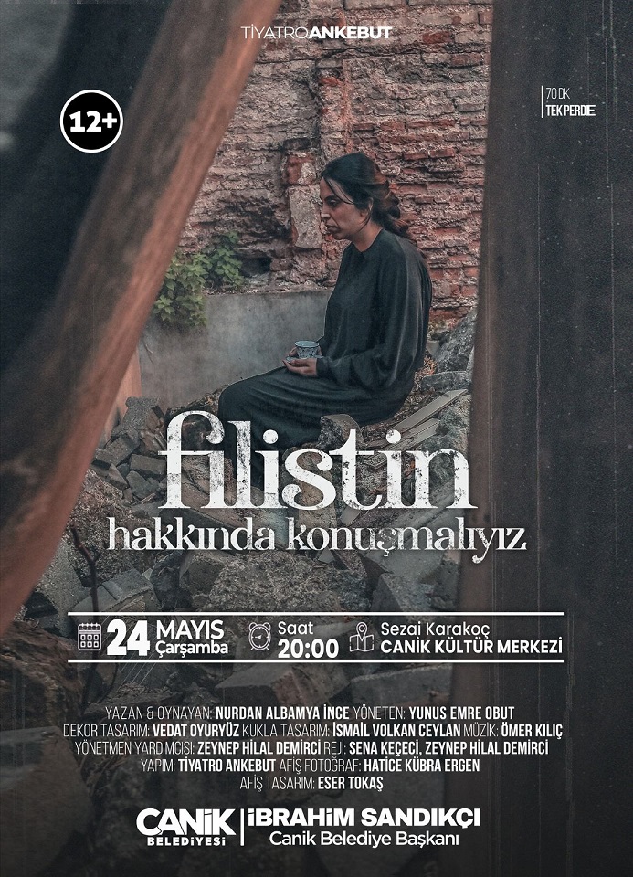 Canik Belediyesi’nin ilçedeki vatandaşları Filistin hakkında konuşmaya davet ettiği ‘Filistin Hakkında Konuşmalıyız’ adlı tiyatro oyunu ilçede sanatseverlerle buluşacak. Canik’te sahne alacak tiyatro oyunu ile Mescid-i Aksa’ya yakın bir mesafede oturan ve işgalci İsrail güçleri tarafından evinden zorla çıkarılmaya çalışan Filistinli Meryem’in işgalcilere karşı verdiği mücadeleler ışığında, Filistin’de yaşanan ortak acılara ve insanlık dramına değinilecek. Oyuncu ve tiyatro yazarı Nurdan Albamya İnce tarafından kaleme alınan ve sahnelenecek olan Filistin Hakkında Konuşmalıyız’ adlı tek perdelik tiyatro oyunu tüm vatandaşların katılımına açık ve ücretsiz bir şekilde 24 Mayıs Çarşamba günü saat 20.00’da Sezai Karakoç Canik Kültür Merkezi’nde gerçekleşecek.