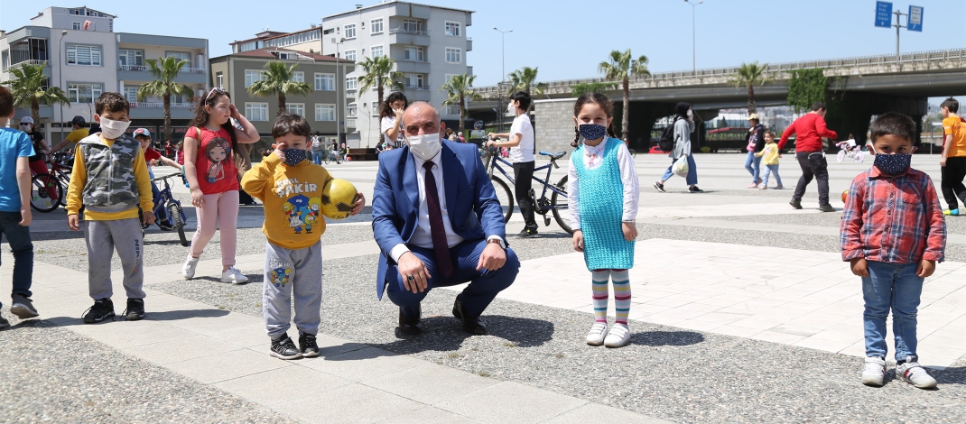 Başkan Sandıkçı, kontrollü sosyal hayat takvimi kapsamında 4 saatliğine sokaklara, parklara çıkan çocukların sevinçlerine ortak oldu. Çocuklara maske dağıttı.
