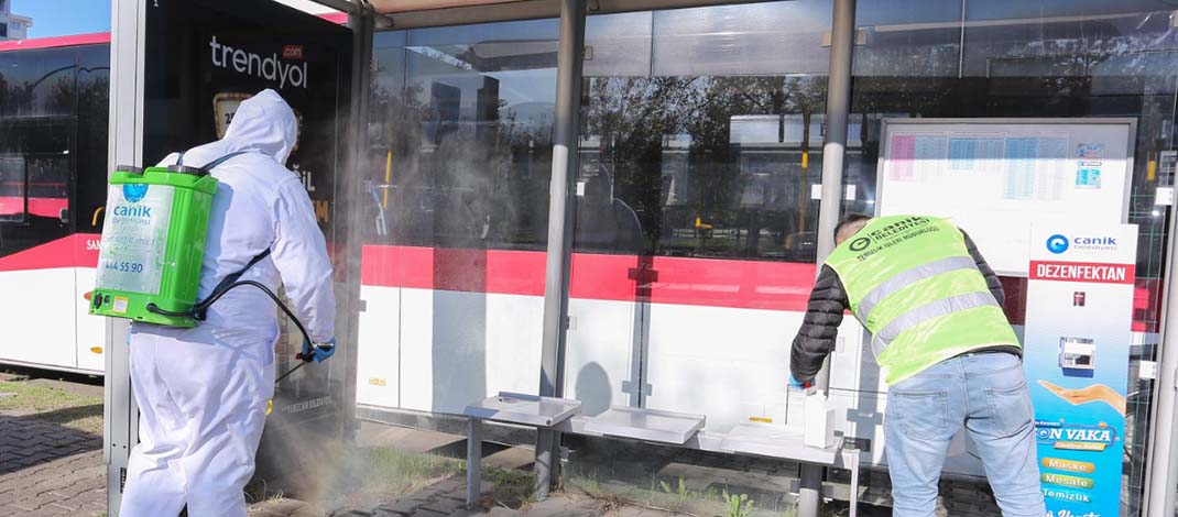 Belediyenin kendi atölyesinde hazırlanarak ilçede ki toplu taşıma duraklarına yerleştirilen dezenfektan stantlarının son vaka görülene kadar her yere konulacağını söyleyen Canik Belediye Başkanı İbrahim Sandıkçı, “ Belediyemiz ve ekiplerimiz gerçekten her alanda virüsle mücadele için büyük bir savaş veriyor. Bu mücadelenin daha güçlü bir şekilde devam etmesi için bir yandan üretiyoruz, bir yandan ürettiklerimizi derhal sahaya sürüyoruz. Vatandaşımızın hayatını tehdit eden bu tehlike ortadan kalkana kadar gece ve gündüz mücadelemiz devam edecek” diye konuştu.