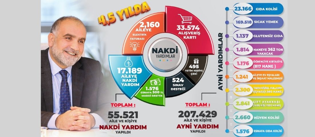 4.5 yıl içerisinde ayni yardımlarla birlikte nakdi yardımların da kesintisiz bir şekilde devam ettiğine işaret eden Başkan İbrahim Sandıkçı, “ Canik’imizde 4.5 yıl içerisinde ayni yardımlarımızla birlikte nakdi yardımlarımızı ara vermeden sürdürdük. 4.5 yılda ihtiyaç sahibi ve dar gelirli 17 bin 189 ailemize nakdi yardım, 2 bin 160 ailemize elektrik faturası, 33 bin 574 adet alışveriş kartı, ilçemizdeki 495 yetim yavrumuza hediye çeki, 524 öğrencimize sınav ücreti desteği sağladık. Nakdi yardımlarımız çerçevesinde bin 576 esnafımıza 500 Türk lirası maddi desteklerinde bulunduk. Sosyal yardım çalışmalarımızı 4.5 yılda olduğu gibi büyük bir hassasiyetle sürdürmeye devam edecek, dar gelirli, ihtiyaç sahibi ve engelli vatandaşlarımızın her zaman yanında olacağız” ifadelerini kullandı.