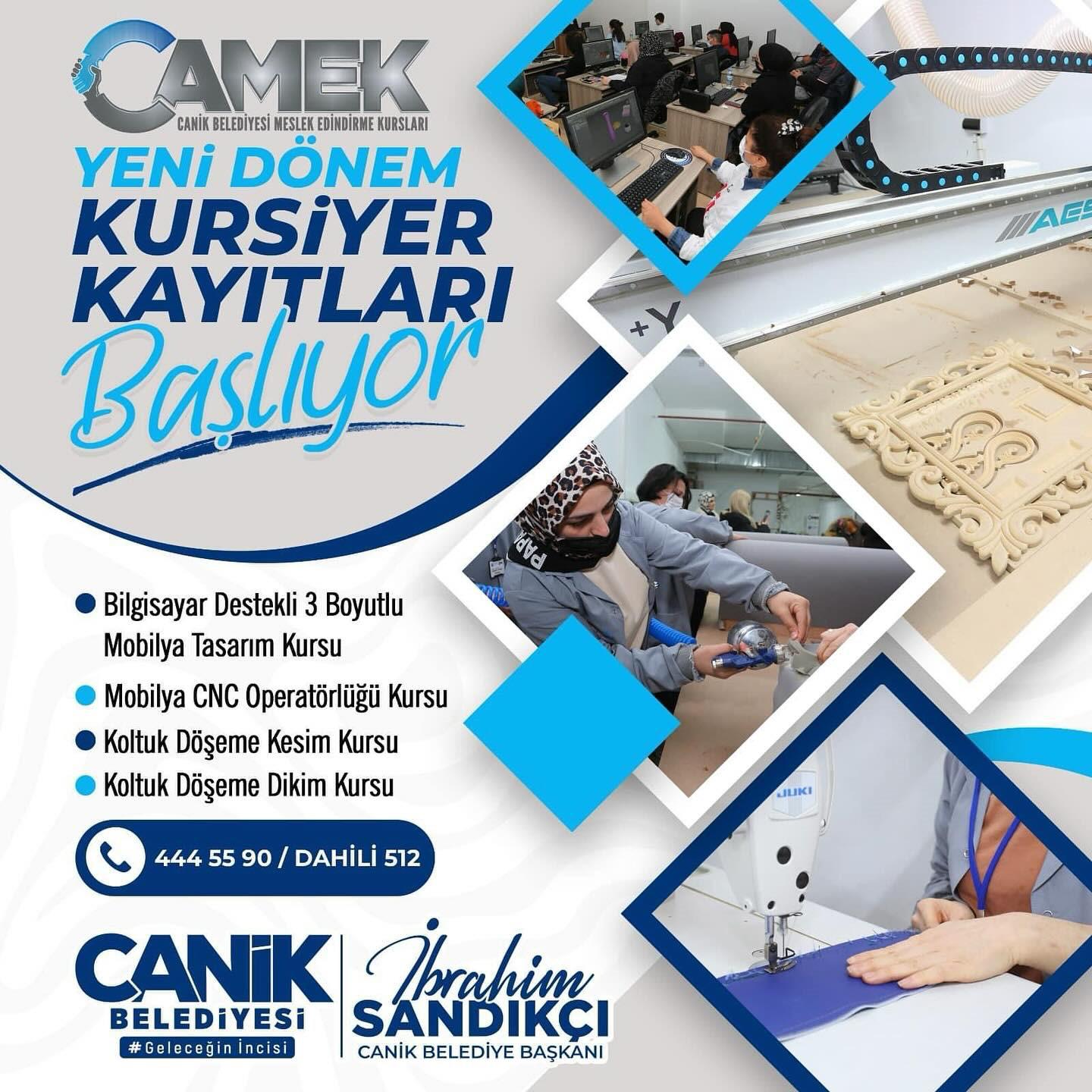 Canik Belediyesi Meslek Edindirme Kursları’nda (CAMEK) yeni dönem kursiyer kayıtları başladı. İlçede hayata geçirdiği projelerle mesleki istihdamda öncü olamaya devam eden Canik Belediyesi, CAMEK’in yeni eğitim döneminde vatandaşlara Bilgisayar Destekli 3 Boyutlu Mobilya Tasarım Kursu, Mobilya CNC Operatörlüğü Kursu, Koltuk Döşeme Kesim Kursu ve Koltuk Döşeme Dikim Kursu olmak üzere 4 farklı eğitim modülünde ücretsiz sertifikalı mesleki eğitim programı gerçekleştirecek.
