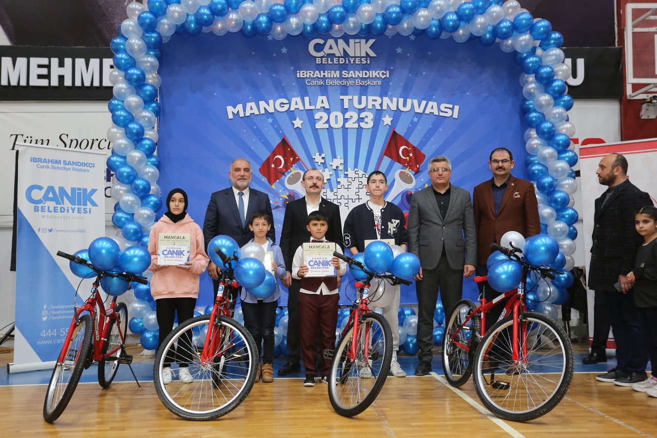 Canik Belediye Başkanı İbrahim Sandıkçı, 7’den 70’e Mangala Turnası ödül töreninde gerçekleştirdiği konuşma, gençlerin zihinsel ve fiziksel olarak gelişimlerine ve eğitimlerine büyük önem verdiklerini ifade etti. Başkan İbrahim Sandıkçı, “Gençlerimizin kaliteli bir şekilde eğitim almalarını, hem zihinsel hem bendensel gelişimlerini ve kendilerini en iyi şekilde yetiştirmelerine büyük önem veriyoruz. Canik Keşif Kampüsümüzde eğitimlerimiz devam ediyor. İlçemizdeki okullarımıza akıl ve zekâ oyunları sınıfları oluşturduk. Özellikle ilçemizde belirli periyotlar halinde gerçekleştirdiğimiz etkinliklerle gençlerimizi tarihi Türk ve dünyaca bilinen akıl ve zekâ oyunlarıyla bir araya getiriyoruz. Gençler sizlerden tek bir isteğimiz var. Çok çalışmanız, kendinizi her anlamda geliştirmeniz ve sizden sonraki nesilleri yetiştirmenizdir. Ülkemiz ve milletimiz için çalışmaya devam etmenizdir” dedi. Gerçekleşen görkemli ödül töreninde turnuvada farklı kategorilerde dereceye giren katılımcılar ödüllerini Ticaret Bakanı ve AK Parti Samsun Milletvekili Adayı Dr. Mehmet Muş ile Canik Belediye Başkanı İbrahim Sandıkçı’nın elinden aldı. 3 farklı kategoride düzenlenen turnuvada tüm kategoriler için ayrı olmak üzere birinciler bisiklet, ikinciler tablet, üçüncüler ise Mangala oyunu ödüllerinin sahibi oldu.