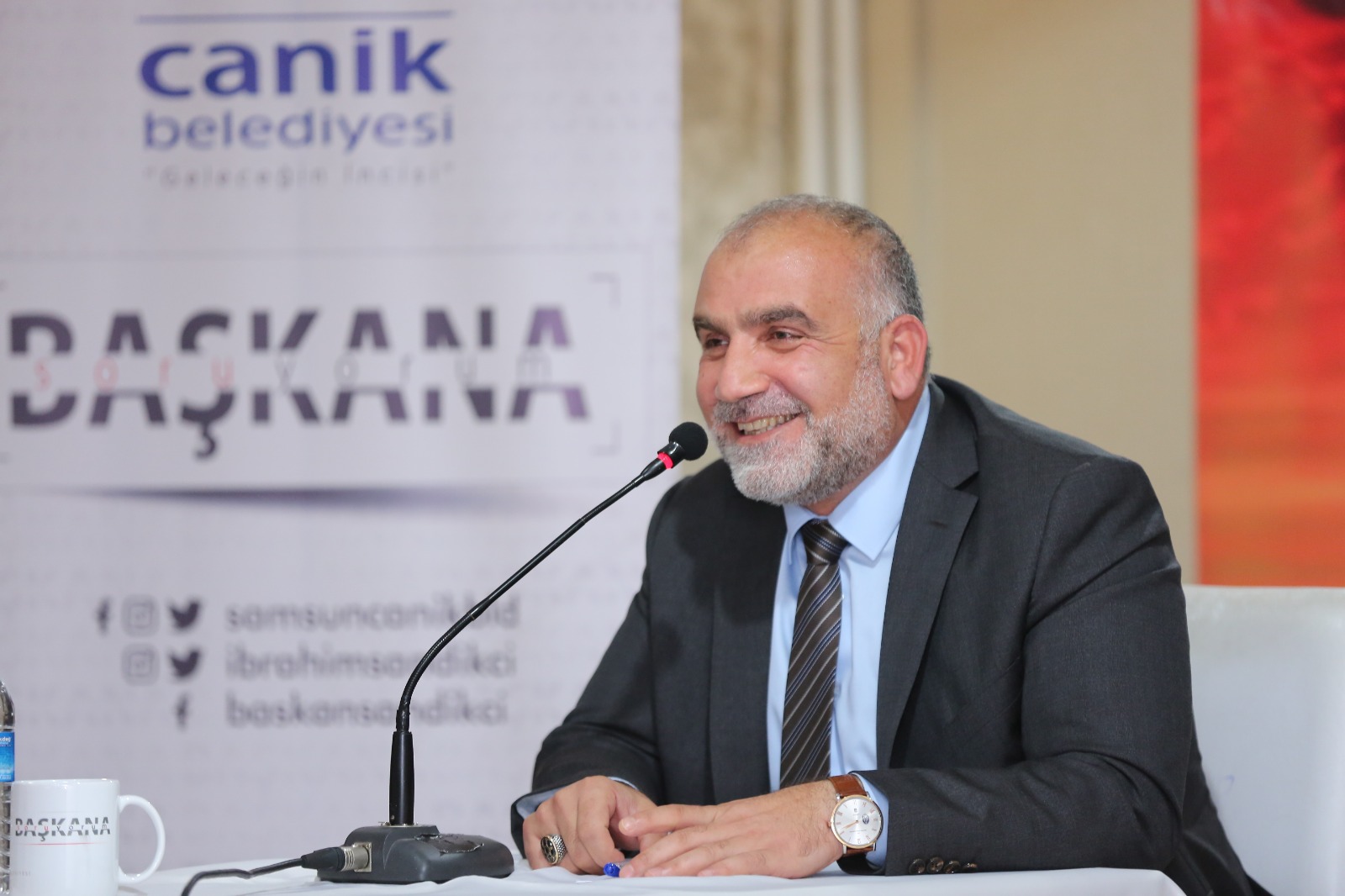 Programına ilk olarak Canik İMKB Anadolu Lisesi öğrencilerinden Ayşegül Poyraz’ın “Başkan olmak için neleri göze aldınız?” sorusuna yanıt vererek başlayan Başkan Sandıkçı: “Belediye Başkanlığı aslında bir meslek değildir. Ülkesine, vatanına, milletine hizmet etmeye vesile olan bir imkandır. Belediye Başkanlığı, yılın 365 gününde 7/24 aktif olarak yapılan bir görevdir. Doğumla başlayıp ölümle son bulan hayatın bütün safhalarında yer alan ne kadar konu varsa, gün içerisinde ya da dönem içerisinde hepsiyle ilgilenmeniz gerekebiliyor. Bütün bunlara zaman ayırabilmeniz için de bazı şeylerden fedakârlık yapmanız gerekmektedir. Bunların başında da aile hayatınız gelmektedir” diye konuştu. “Birilerini sevindirmek, derdine derman olmak, çare bulmak çok güzel bir olay. İnsan olmanın gereği de budur” diyen Başkan İbrahim Sandıkçı, “Yaptığımız her işin sonucunda somut bir çözüm üretebiliyor ve bir dua alabiliyorsak bu bizi mutlu ediyor ve bütün bu fedakarlıklarımızın karşılığını almış oluyoruz aslında” ifadelerini kullandı.