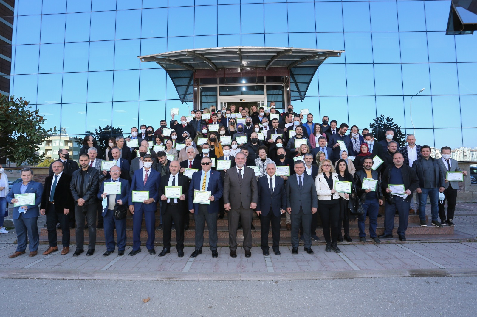 Canik Belediye Başkanı İbrahim Sandıkçı, adına fidan dikilen öğretmenlere sertifikalarını takdim etti.