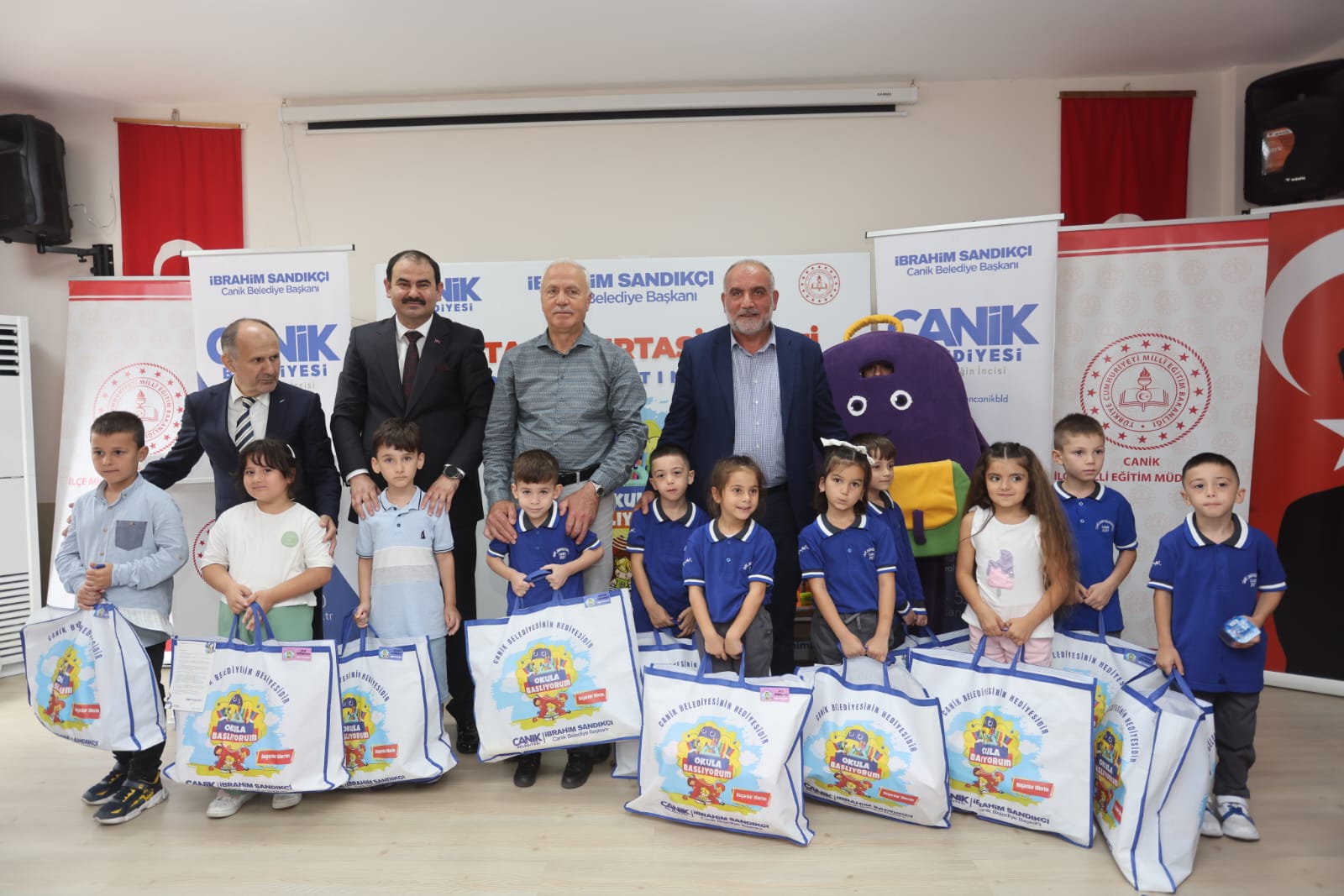 İlçedeki ilkokul birinci sınıfa başlayan tüm öğrencelere, çanta ve kırtasiye setlerinin sıralarında teslim edildiğini ifade eden Canik Belediye Başkanı İbrahim Sandıkçı, Öğrencilerimizin yaşamları boyunca daima zihinlerinde yer alacak bu özel günde onların sevincini paylaşıyor, çanta ve kırtasiye setlerini kendilerine hediye ediyoruz. Okulun ilk günü çanta ve kırtasiye setlerimizi öğrencilerimizle buluşturduk. Çanta ve kırtasiye seti desteğimizle öğrencilerimizi sevindirirken, ailelerimizin ev ekonomilerine bir nebze olsun katkıda bulunmuş oluyoruz. Sırt çantalarımızı, çocuklarımızın rahatlıkla kullanabileceği bir şekilde olmasını en önemli etmen olarak belirledik. Kırtasiye setlerimizin içerisinde kaleminden defterine, rengârenk kuru ve pastel boyalardan, fon karton ve yapıştırıcısına kadar yıl boyunca ihtiyaç duyacağı tüm kırtasiye ürünleri yer alıyor. Öğrencilerimize beslenme çantası ve su matarası da hediye ettiğimiz bugün de, ayrıca her bir yavrumuza abaküs, sayı fasulyesi ve çubuklarından oluşan yardımcı eğitim materyalleri de hediye ettik. İnşallah eğitme yönelik desteklerimizi arttırarak sürdürecek ve eğitim hayatı boyunca öğrencilerimizin yanında yer almaya devam edeceğiz” şekilde ifade etti.