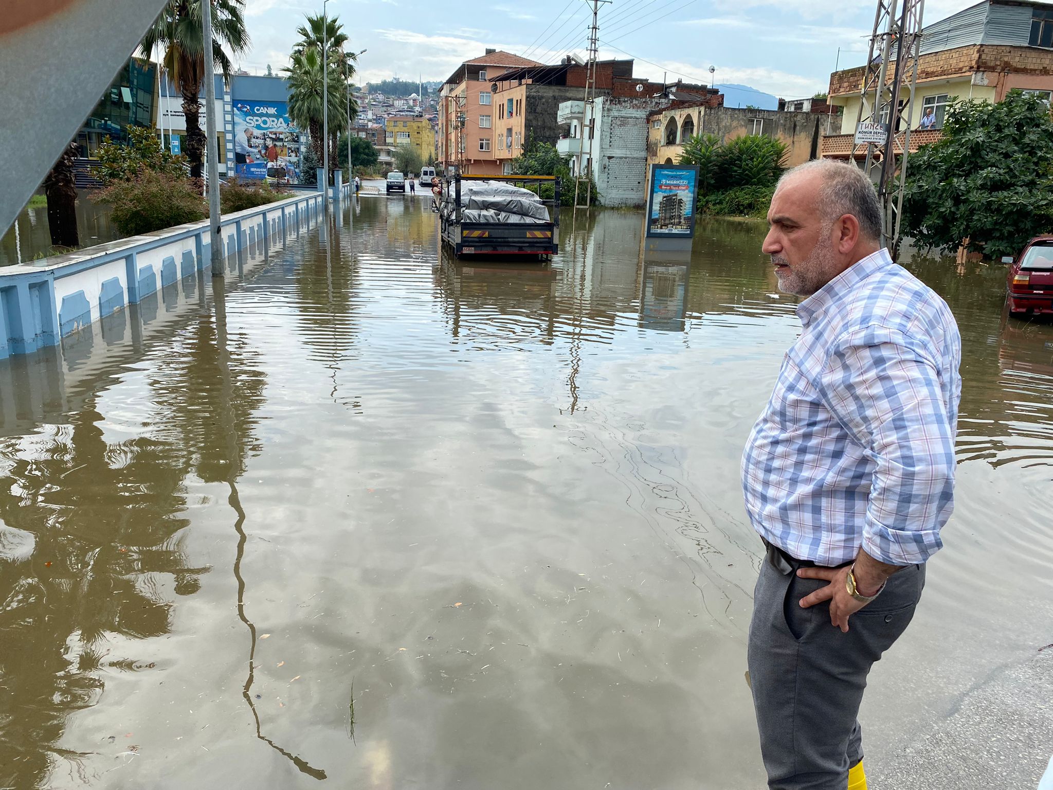 Canik Belediye Başkanı İbrahim Sandıkçı, şiddetli yağışlara karşı ilçede gerçekleştirilen çalışmaları sahadan takip etti.