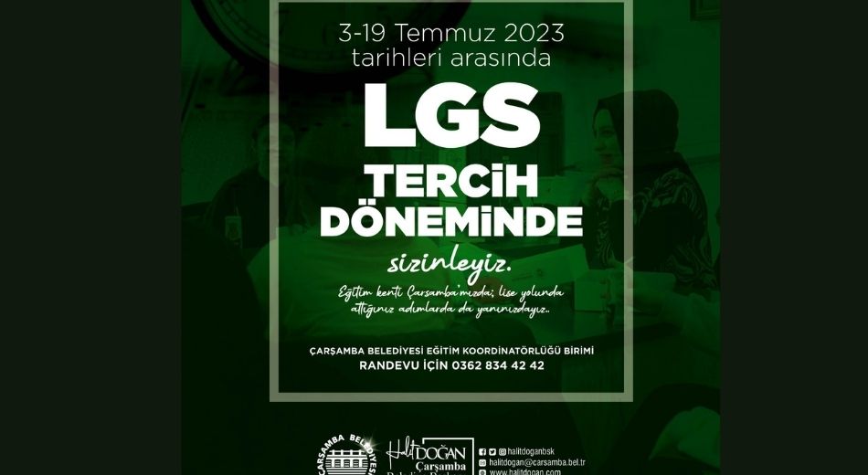 Çarşamba Belediye Başkanı Halit Doğan, “Eğitim kenti Çarşamba’mızda her zaman öğrencilerimizin yanında olmaya özen gösteriyoruz. Öğrencilerimiz tüm yıl boyunca diledikleri liseye gidebilmek için çalıştılar, çaba gösterdiler. LGS’nin açıklanmasının ardından tüm öğrencilerimizde bir heyecan başladı farkındayız. Ancak sınava hazırlanmak kadar doğru tercih yapmak da çok önemli. Eğitim Koordinatörlüğü Birimimizde her yaş grubundan öğrencilerimize yıl boyunca eğitim danışmanlığı yapmayı sürdürüyoruz. Öğrencilerimizin lise yolunda attıkları bu önemli adımda yanlarında olarak uzman kadromuz ile rehberlik yapıyoruz. Öğrencilerimiz, 0362 834 42 42 numaralı hattımızı arayıp randevularını oluşturarak 19 Temmuz tarihine kadar uzmanlarımızda lise tercihleri konusunda rehberlik hizmeti alabilirler. Gençlerimize başarılar diliyorum, Rabbim haklarında hayırlısını nasip etsin” diye konuştu.