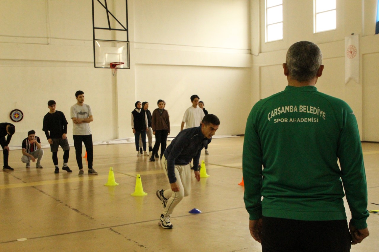 Çarşamba Belediyesi tarafından ücretsiz olarak açılan Spor Akademisi Hazırlık Kursları devam ediyor. Polis Meslek Yüksekokulu (PMYO), Beden Eğitimi ve Spor Yüksekokulları (BESYO) ve Milli Savunma Üniversitesi (MSÜ) hedefiyle çalışan adaylar, uzman eğitimciler eşliğinde özel yetenek sınavlarına hazırlanma imkanı buluyor.