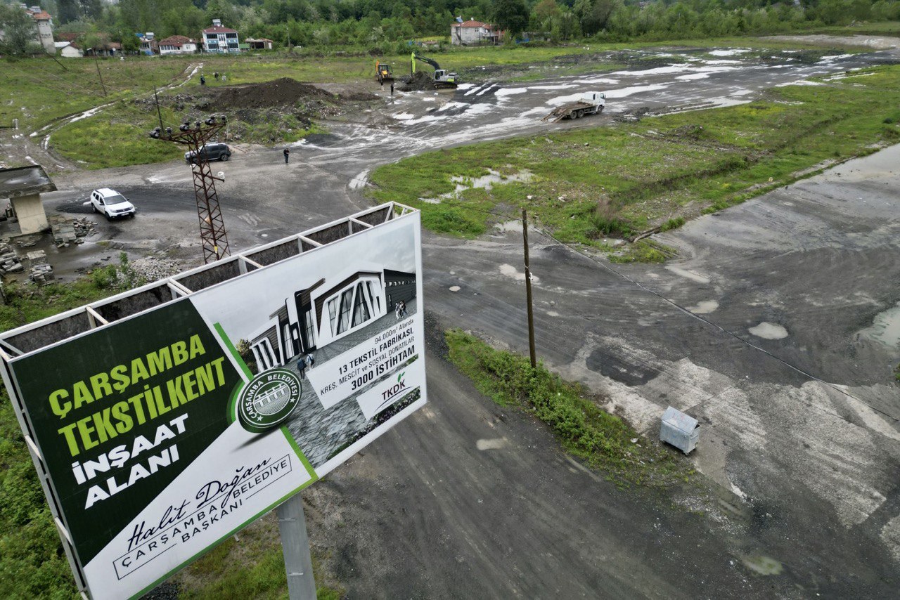 Samsun’un Çarşamba Belediyesi öncelik aş, öncelik iş ilkesi ile ilçede üretim, istihdam ve kalkınmayı arttırmaya yönelik çalışmalarına ara vermeden devam ediyor. Tekstilkent projesi ile Çarşamba’da 94 bin metrekare alan üzerinde 12 fabrika kurulacak, 3 bin kişiye istihdam olanağı sağlanacak. KFC Tekstil Sanayi ve Ticaret Limited Şirketi, 15 bin metrekare arazide 8 bin metrekare kapalı alanda yapılacak çorap fabrikası için ilk kazmayı vurdu. Çalışmaların bir bir yıl içerisinde tamamlanarak fabrikanın faaliyete geçmesi planlanıyor.