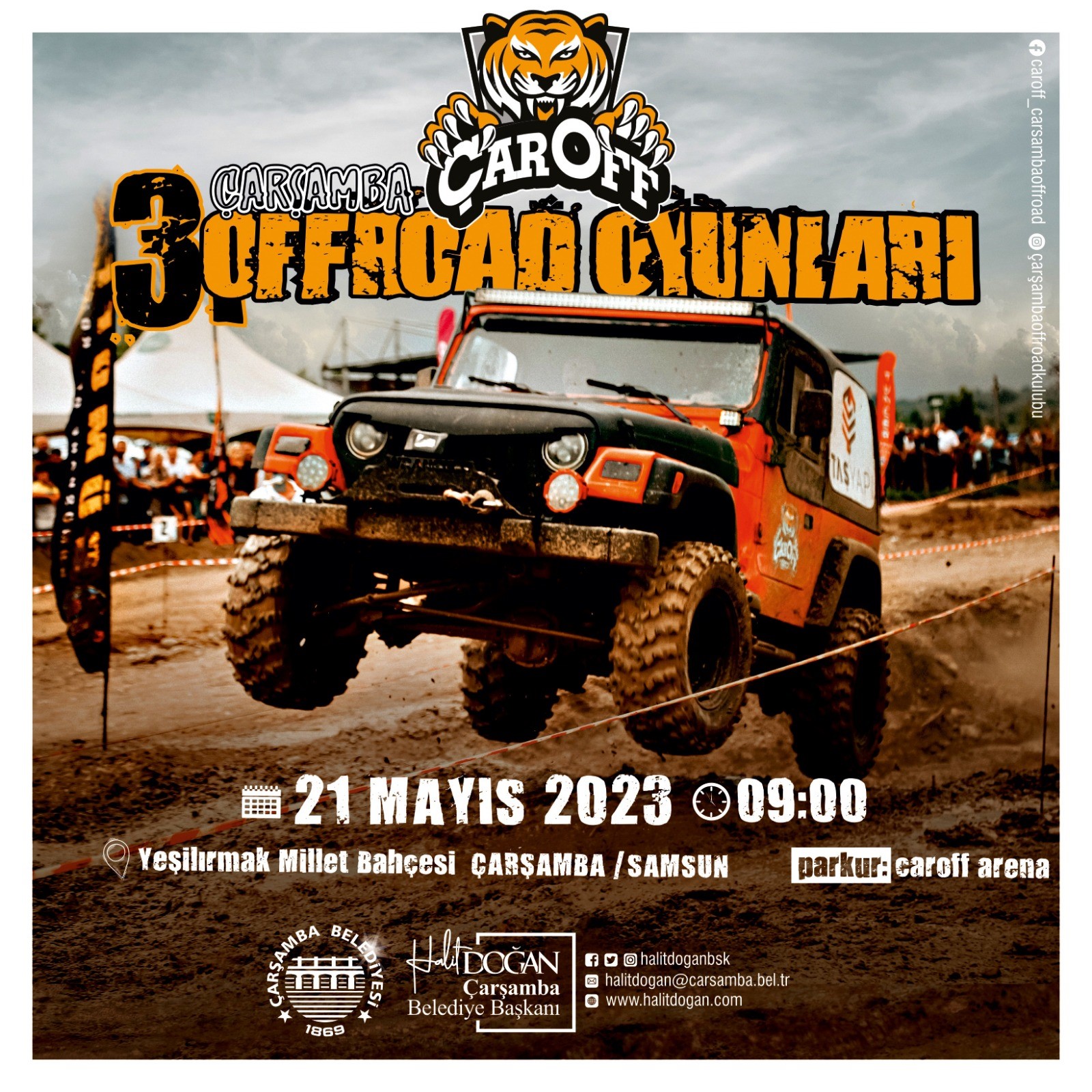 Çarşamba Belediyesi’nin katkılarıyla bu yıl üçüncüsü düzenlenen ÇAROFF Off-Road Oyunları, 21 Mayıs Pazar günü saat 09.00’da Yeşilırmak Millet Bahçesinde gerçekleşecek. Yarışma için birçok il ve ilçeden tam donanımlı arazi aracının Çarşamba’ya gelmesi bekleniyor.
