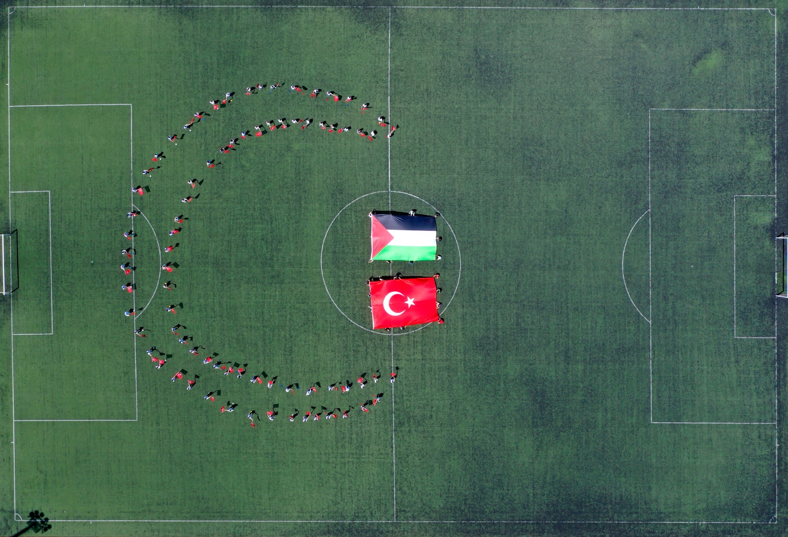 Çarşamba Belediyesi Spor Akademisi öğrencileri oluşturdukları koreografi ile Türk Bayrağı ve Filistin Bayrağı’nı yan yana açarak Filistinli Müslüman kardeşlerimizin yanındayız dediler.