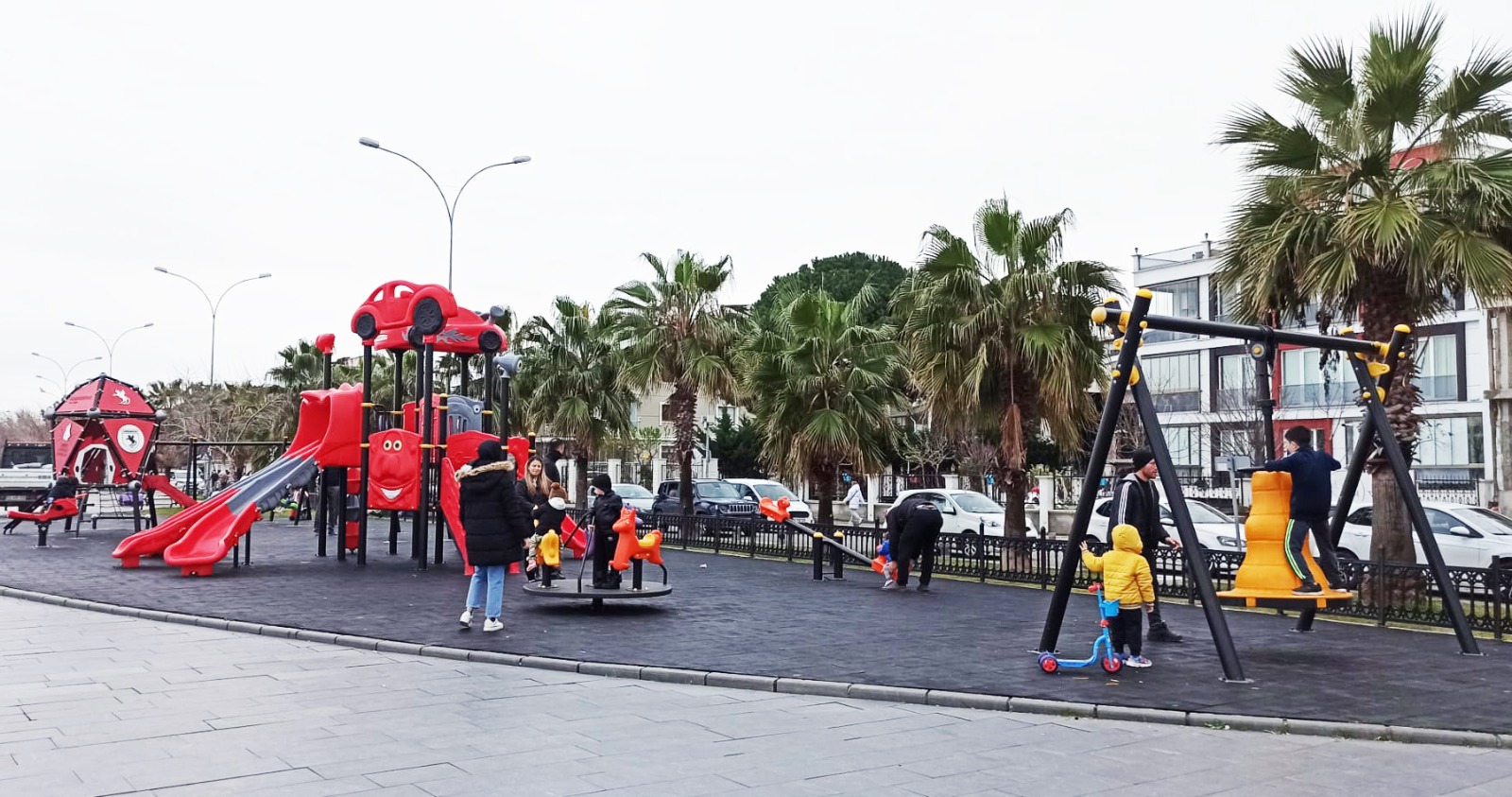 ‘Samsunspor temalı’ oyun grubunun deniz kenarında bulunmasından dolayı korozyona uğraması, bağlantı noktalarında kopukluk ve kırıkların oluşması, demir aksamında paslanmalar yaşanması nedeniyle çocukların zarar görmesinin engellenmesi amacıyla harekete geçildi. Büyükşehir Belediyesi Park ve Bahçeler Dairesi Başkanlığı’nın talimatıyla geçen hafta ilgili firma tarafından oyun grubu sökülerek fabrikaya götürüldü. Özel kumlama sistemiyle yeniden boyanarak tamirat ve bakımı yapılıp bugün de tekrar eski yerine montajı gerçekleştirildi.