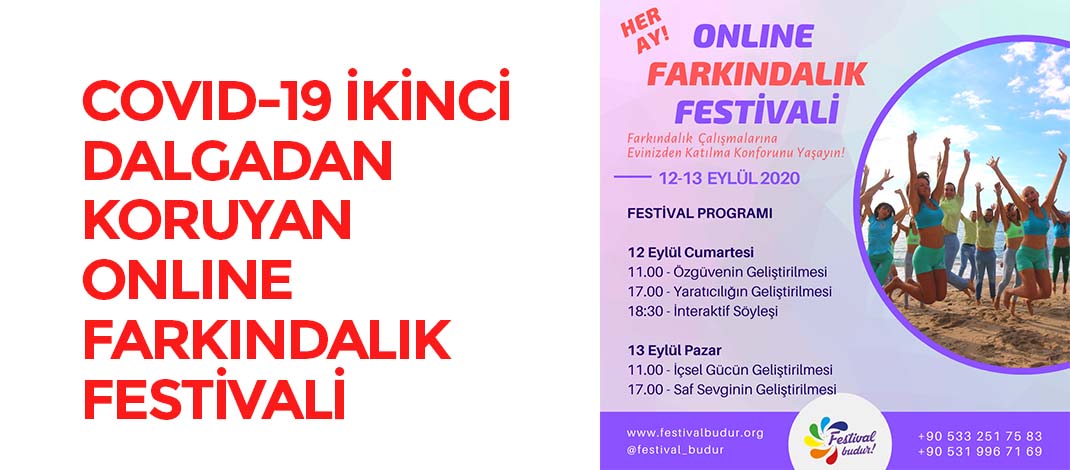 Dünya Değişim Akademisi tarafından her ay kesintisiz olarak gerçekleştirilen Uluslararası Farkındalık Festivali, Covid-19 nedeniyle alınan önlemler kapsamında, 12-13 Eylül tarihlerinde tüm dünyaya ONLINE olarak sunulacak.