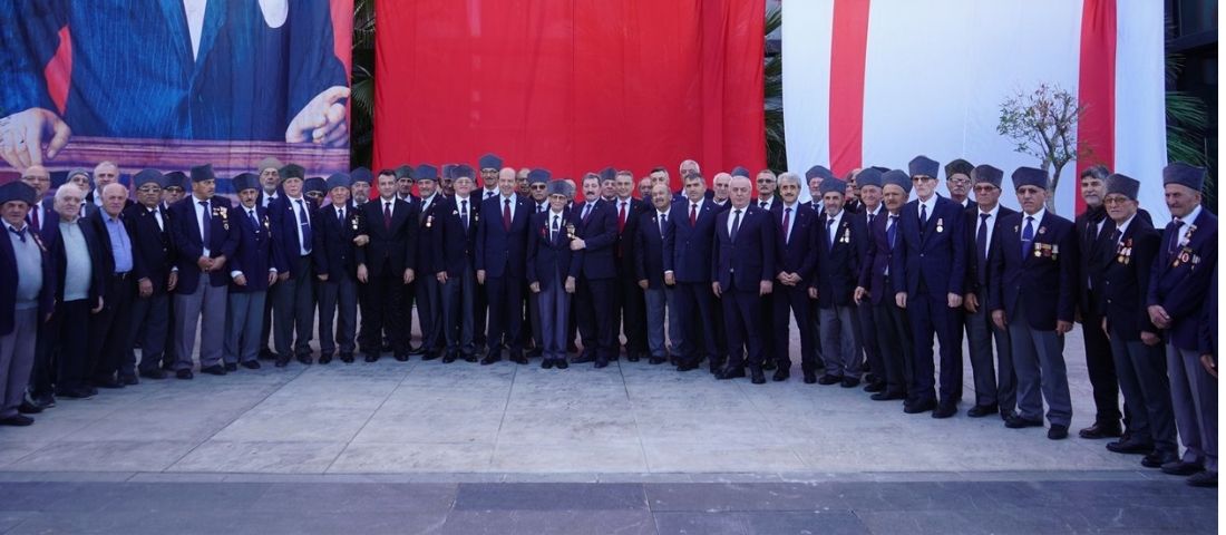 Kuzey Kıbrıs Türk Cumhuriyeti (KKTC) Cumhurbaşkanı Ersin Tatar, konuşmasının ardından gaziler tarafından kalpak hediye edildi.