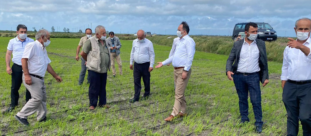 Bafra Kaymakamı Cevdet Ertürkmen, beraberindeki heyetle birlikte, İlçemize bağlı Doğanca Mahallesinde Damlama Sulama sistemi ile 110 dekar alanda çeltik ekimi yapan Adnan ve Halil Koparan kardeşlere ait çeltik tarlalarında incelemelerde bulundu.