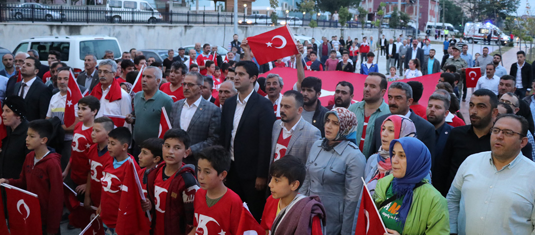 Hükümet Konağı önünden İlçe Kaymakamı İbrahim Engin Şenay, Belediye Başkanı İbrahim Sarıcaoğlu, AK Parti ilçe Başkanı Osman Atlı, MHP ilçe Başkanı Cahit Kamber, ilçe Milli Eğitim Müdürü, Belediye Meclis Üyeleri, STK Temsilcileri ve vatandaşların katılımı ile gerçekleştirilen yürüyüş, ilçe halkının sevgi ve destek gösterileri altında yapıldı.