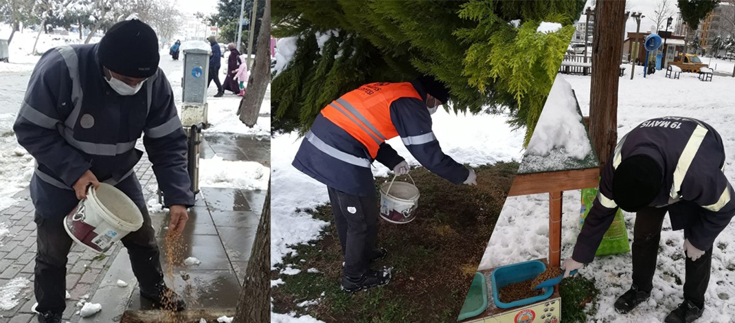 İlçede etkili olan kar yağışının ardından yem bulmakta zorlanan kuşlar için ağaç diplerine kuşyemi, daha önceden ilçenin muhtelif yerlerine yerleştirdikleri kulübelere ve mamalıkları her gün kontrol ederek mama bıraktıklarını belirten 19 Mayıs Belediye Başkanı Osman Topaloğlu; ‘’ Sokak hayvanları ve doğadaki kuşlar bizim can dostlarımız. Sadece sokağa çıkma kısıtlamasının olduğu günlerde değil, her gün sokak hayvanlarını aç bırakmıyoruz. Kıymetli vatandaşlarımızdan da kapılarının önlerine bir kap su ve mama koymalarını, pencere ve balkon kenarlarına ekmek kırıntıları gibi kuşlar için yemler bırakmalarını rica ediyoruz.’’ dedi.