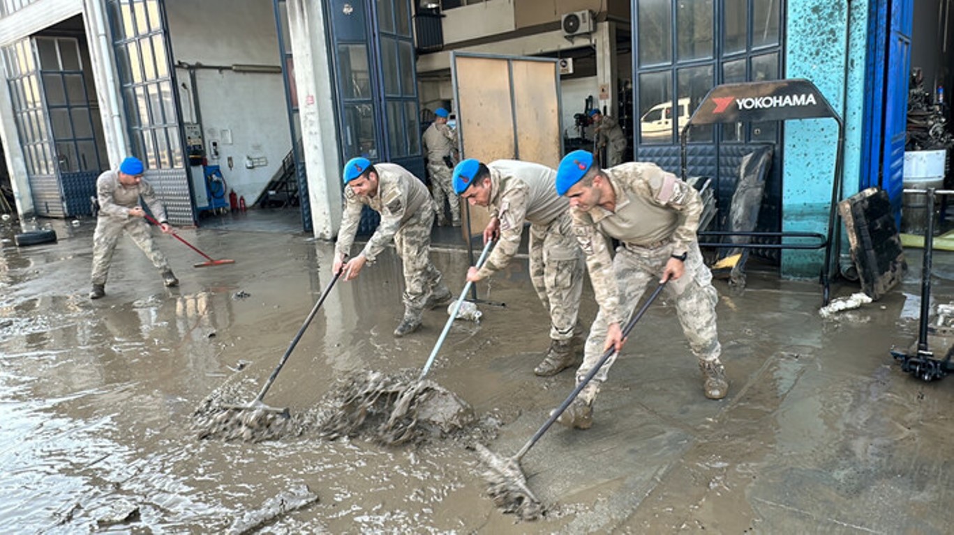 Son günlerde etkisini gösteren sağanak yağışın ardından Karadeniz’in kıyı kesimlerinde yaşanan sel felaketinden etkilenen Düzce’de temizlik çalışmalarına askeri birlikler de katıldı.Karadeniz’in kıyı bölgeleri selle uğraşıyor. Mevsim normalleri üzerinde etkisini gösteren sağanak yağış sonrasında birçok kentte sel baskınları yaşandı. Cadde ve sokaklar su ile dolarken çok sayıda mekan sular altında kaldı. Düzce’de sağanak yağışın ardından Melen Çayı’nın taşmasıyla Galericiler sitesi ve Sanayi Sitesi selden etkilendi. Taşan çayın oluşturduğu tahribat sular çekilince ortaya çıktı.‘ASKERLERİMİZ GELDİ BİZLERE YARDIM EDİYORLAR SAĞ OLSUNLAR’Suların çekildiği bölgede esnaf çalışmalarını yürütürken, çalışmalara bölgede konuşlu bulunan Jandarma Asayiş Komando bölüğü de katıldı. Suların çekildiği alanlara gelen Mehmetçik, ellerine aldıkları kazma kürek ne varsa yardıma koştu. İşletmesinde askerlerin temizlik çalışmasına destek verdiğini belirten Ferda Sevimli, “Gece saatlerinde dükkana geldim. 2-3 dakika sürmedi bir anda dükkanın içi sular altında kaldı. İçerideki cihazlarım komple zarar gördü. Askerlerimiz geldi bizlere yardım ediyorlar sağ olsunlar. Allah onlardan razı olsun. Başımızdan eksik etmesin. Büyük bir afet oldu. Devletimiz var olsun.”dedi.Köksal ÖNER