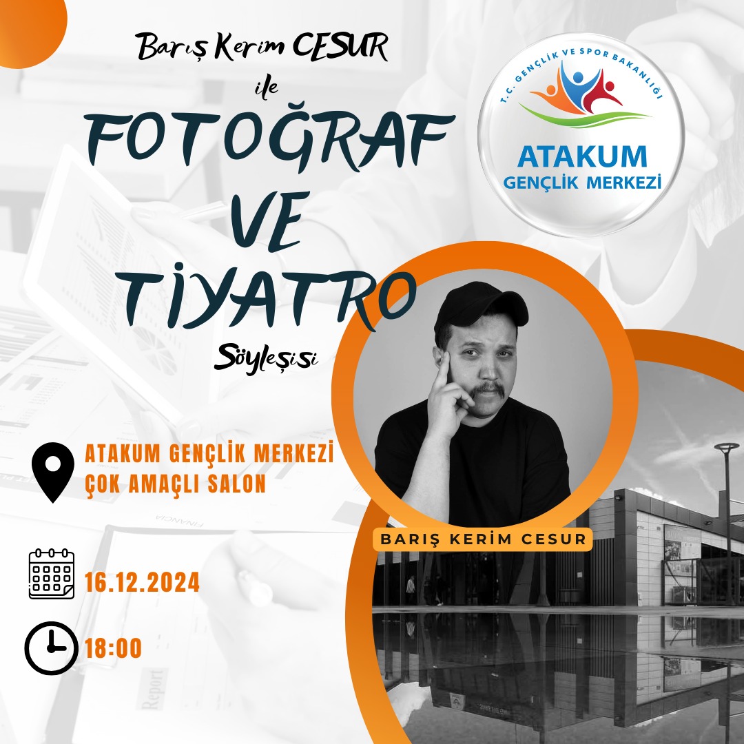 16 Aralık Pazartesi Günü de GSB Atakum Gençlik Merkezin de Fotoğraf ve Tiyatroya Meraklı Gençlerle ve Sevenleriyle Buluşacak.