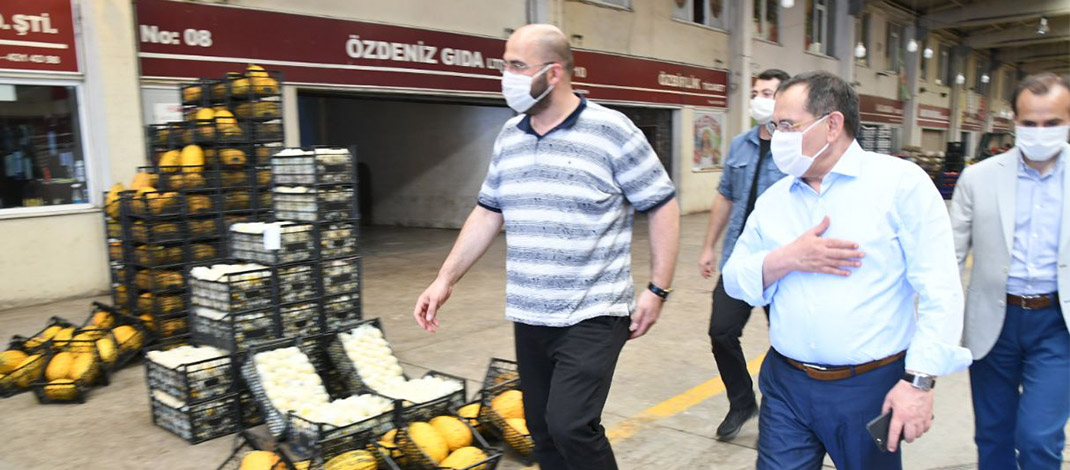 Ziyaretin ardından altyapı çalışmaları tamamlanan Sebze ve Meyve Hali’ni gezerek yapımına başlanan 30 bin metrekarelik asfalt çalışmasını inceleyen Büyükşehir Belediye Başkanı Mustafa Demir, yapılanlar hakkında bilgi aldı. Ekip arkadaşlarına başarılar dileyerek Sebze ve Meyve Hali’ndeki esnaflara da ‘Hayırlı işler’ dileklerinde bulundu.