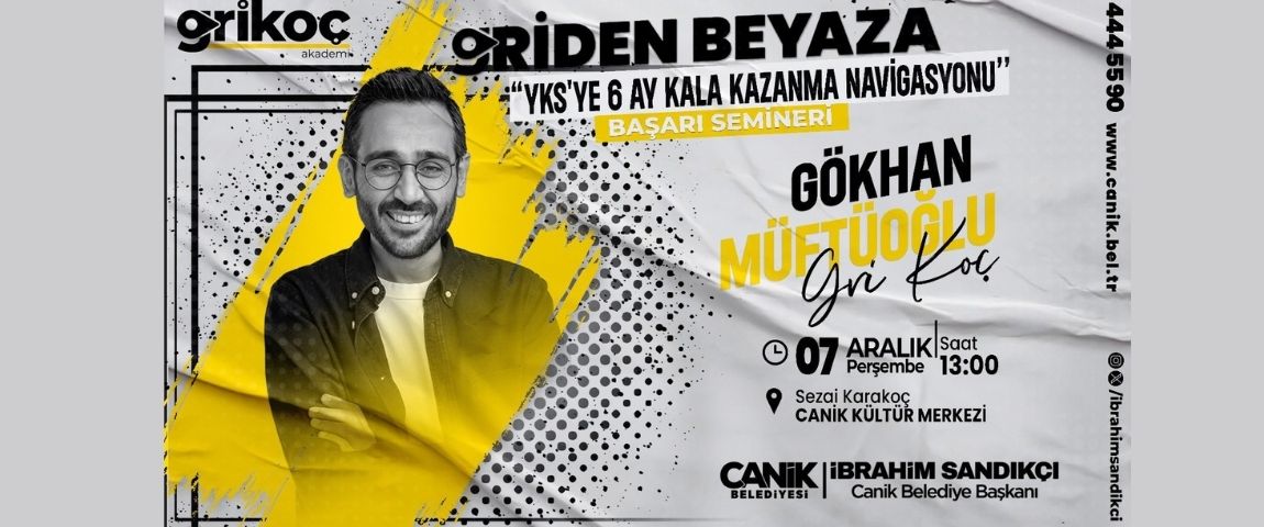 Sınavlara hazırlanan öğrencilere yönelik desteklerini arttırarak sürdüren Canik Belediyesi, Eğitimci-Yazar Gri Koç Gökhan Müftüoğlu’nu öğrencilerle buluşturacak. Canik’te ‘YKS’ye 6 Ay Kala Kazanma Navigasyonu’ adlı seminer programıyla, Yükseköğretim Kurumları Sınavı’na (YKS) hazırlanan öğrencilerle bir araya gelecek olan Eğitimci-Yazar Gri Koç Gökhan Müftüoğlu, ‘stres yönetimi’, ‘soru çözme teknikleri’, ‘verimli çalışma teknikleri’ ve ‘zaman yönetimi’ gibi önemli konu başlıklarında eğitim verecek. YouTube’da kendi alanında en çok aboneye sahip üretici unvanını da elinde bulunduran Gri Koç Gökhan Müftüoğlu’nun katılımıyla, Canik Belediyesi ve Canik İlçe Milli Eğitim Müdürlüğü iş birliğiyle ilçede düzenlenecek olan ‘YKS’ye 6 Ay Kala Kazanma Navigasyonu’ adlı seminer programı, 7 Aralık Perşembe günü saat 13.00’de Sezai Karakoç Canik Kültür Merkezi’nde gerçekleşecek.