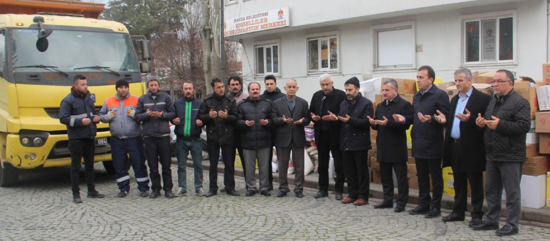 Toplanan yardım malzemelerini taşıyan kamyon yüklendikten sonra Havza Belediye Başkanı Sebahattin Özdemir, AK Parti İlçe Başkanı Kadir Kayan, MHP İlçe Başkanı Uğur Yıldırım, Belediye Meclis ve Ak Parti Yönetim Kurulu üyelerinin katıldığı törenin ardından yola çıktı.