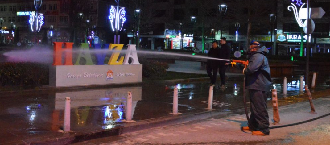Çin’de ortaya çıkan ve daha sonra dünyanın birçok ülkesine yayılan korona virüsü (Kovid-19) hastalığının bulaşma riskine karşı alınan tedbirler kapsamında cadde ve sokaklarda dezenfeksiyon çalışması yapıldı.