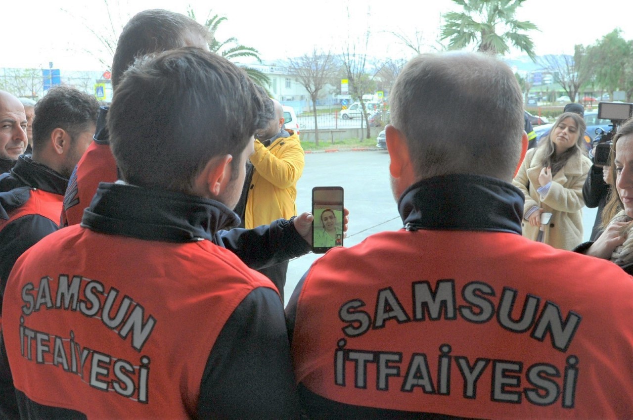 ‘SİZ BİZİM KAHRAMANIMIZSINIZ’Samsun Büyükşehir Belediyesi itfaiye ekiplerinin Elbistan’da enkaz altından sağ kurtardığı Betül Aslı Akman, kendisini yeniden hayata bağlayan itfaiye ekibini görüntülü olarak telefonla arayıp teşekkür etti. Akman İtfaiye ekibine “Siz bizim kahramanımızsınız” diyerek seslendi. Görüşme sırasında duygu dolu anlar yaşandı. Büyükşehir Belediye Başkanı Mustafa Demir ise, “Depremin olduğu ilk günden itibaren bütün imkan ve kabiliyetlerimizle bölgeye yardım için seferber olduk” dedi.