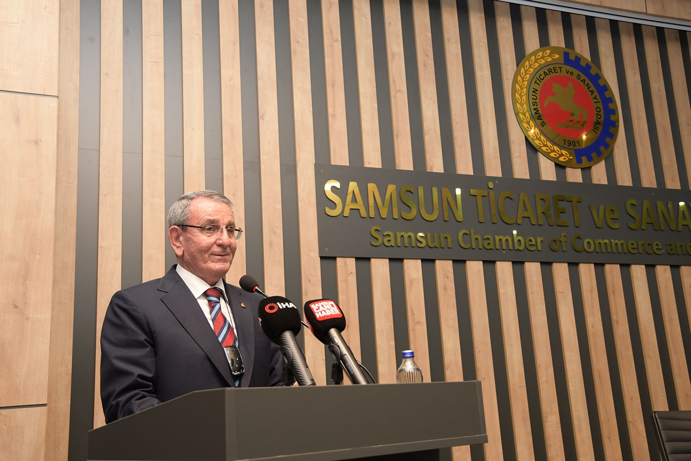 Konuşmasına, Samsun iş dünyasının en büyük çatı kuruluşu olarak, kanunla verilen görevlerin yanısıra, üyelerin ve bölgenin ihtiyaçları doğrultusunda politikalar üreterek, ekonomik ve sosyal bakımdan bölgesel ve ulusal kalkınmaya destek sağlamak amacıyla çalışmalar yürüttüklerini belirten Samsun TSO Yönetim Kurulu Başkanı Salih Zeki Murzioğlu, “Bu anlayışla şehrimizin sahip olduğu potansiyelin farkında olarak, sizlerin de işbirliği ve desteği ile stratejik planlarımızın rehberliğinde bugüne kadar pek çok başarılı çalışmaya imza attık. Ortak çalışma kültürümüzün bir tezahürü olarak şehrimize kazandırdığımız yapılarla büyük gurur duyuyoruz.Bunlardan bir kaçı Türkiye’nin ilk milli fuarına evsahipliğiyapan Samsun’un uzun yıllar özlem duyduğu, ilk güdümlü proje Samsun Fuar ve Kongre Merkezi, lojistik alanındaki potansiyelimizin ve stratejik konumumuzun değerlendirilmesine hizmet eden Samsun Lojistik Merkez, nitelikli, kaliteli üretimi destekleyen Metal, Metroloji ve Kalibrasyon Laboratuvarı, Ar-ge inovasyon yeniçağın olmazsa olmazı, Samsun Teknopark, şehrimize yeni sanayi yatırımları kazandıracak olan Yeni Organize Sanayi Bölgesi ve bugün sizleri ağırlamaktan, üyelerimize, misafirlerimize daha modern bir yüzle hizmet vermekten gurur duyduğumuz yeni hizmet binamız. Tüm bunlarla birlikte üyelerimizin kapasitelerinin geliştirilmesine, şehrimizin kalkınmasına hizmet eden onlarca proje bizim için büyük kazanım” dedi.