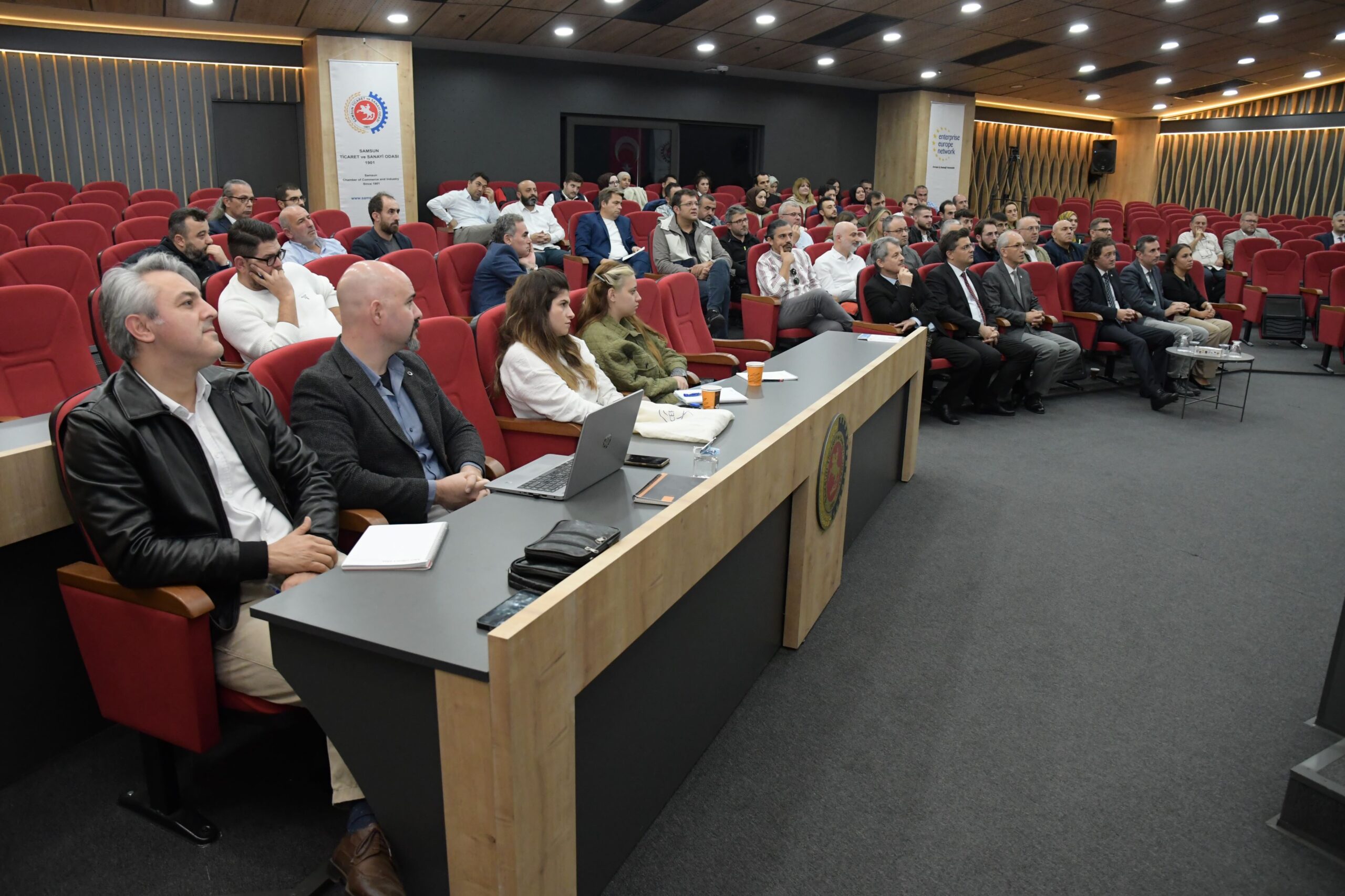 Samsun Ticaret ve Sanayi Odası’nın (STSO) koordinatörlüğünü yürüttüğü Avrupa İşletmeler Ağı Karadeniz Projesi kapsamında iş dünyasının temsilcilerine yönelik, “İhracatın Rotasını Nasıl Belirleriz” konu başlıklı, dış ticaret ve uluslararasılaşma semineri düzenlendi. Samsun TSO M. Rifat Hisarcıklıoğlu Meclis Salonu’nda düzenlenen eğitimin açılışında konuşan Samsun TSO Yönetim Kurulu Üyesi Kerem Tüfekçi, Avrupa İşletmeler Ağı Karadeniz Projesi kapsamında birçok faaliyet gerçekleştirdiklerini belirterek, “Oda olarak bölgenin ihtiyaçları doğrultusunda politikalar üreterek sınai, ticari ve sosyal bakımdan ülke kalkınmasına destek sağlamak misyonu çerçevesinde projeler üretiyor, çalışmalar gerçekleştiriyoruz. Bu bağlamda oda olarak kente kazandırdığımız bölgeye hizmet edecek büyük ölçekli yatırımların yanı sıra, kapasite geliştirici genel ve sektörel odaklı çalışmalar da yürütüyoruz. Pek çok faaliyeti içeren, bölgedeki işletmelerin uluslararası platformda yer almasını sağlamak, rekabet edebilirlik ve sürdürülebilirliğin geliştirmek amacıyla hizmet veren Karadeniz Bölgesinde onaltı ili kapsayan ve koordinatörlüğünün tarafımızdan yürütüldüğü bir network projesi olan Avrupa İşletmeler Ağı bunların başında geliyor. Yapılan bu yatırımlar, sektörel odaklı projeler, genel ticaret ve sanayiye yönelik projelerin şüphesiz nihai hedefi ise Samsun’un kalkınmasıdır. Tüm çabamız ve çalışmalarımız bu nihai hedef üzerine kuruludur” dedi.