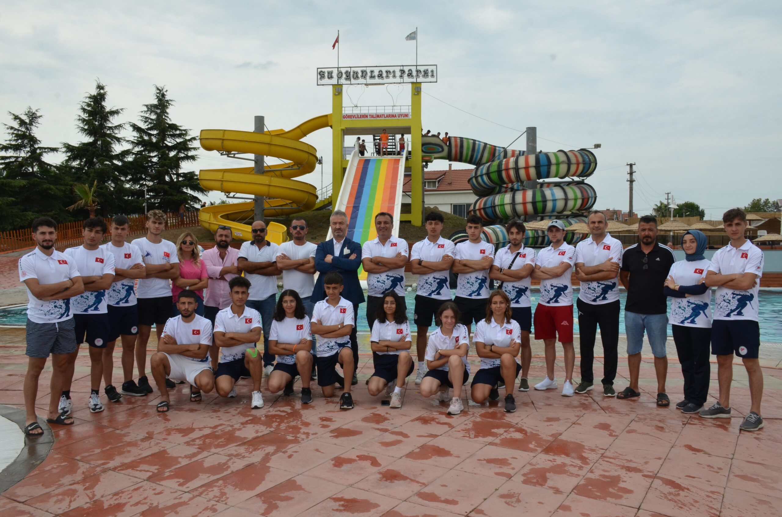 Short Track Milli Takımına Baş antrenör Artur Sultangaliyev, Bölge Sorumlusu Davut Numanoğlu ve Samsun İl Temsilcisi Kemalettin Ak eşlik ediyor.