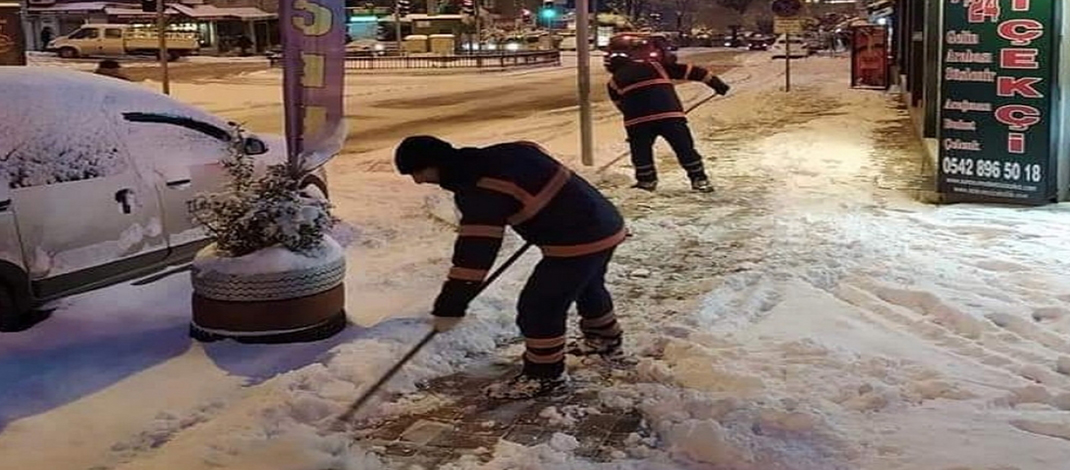 Kar kalınlığı 10 santimetreyi bulan ilçede, buzlanmaya karşı belediye ekipleri anında müdahale etti. Kar yağışı ile birlikte çalışmalara başlayan ekipler gece boyunca sahada tuzlama ve kar küreme çalışmasını aralıksız sürdürdü.