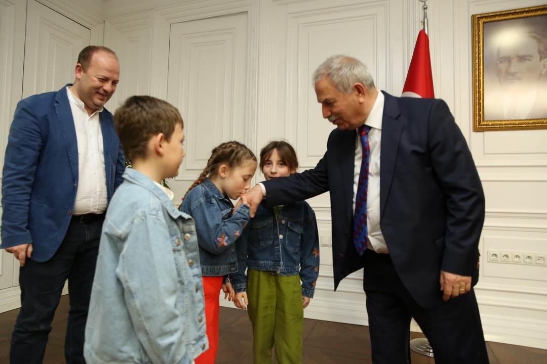 BAYRAMLAŞMAYA GELEN MİNİKLER İLK BAYRAM HARÇLIGINI BAŞKAN DEMİRTAŞ’TAN ALDI