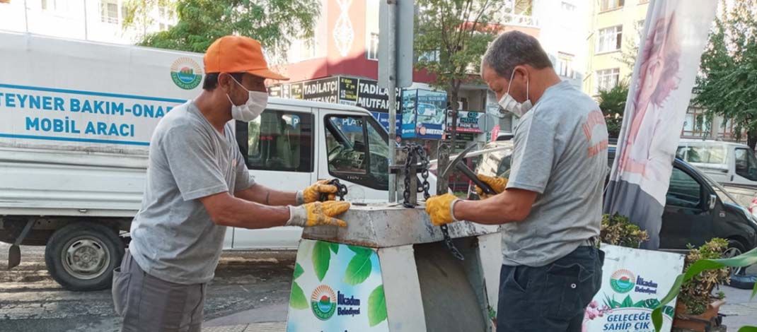 İlkadım Belediyesi Temizlik İşleri Müdürlüğü, değişimine ihtiyaç duyulan çöp konteynerlerini bakım ve onarımlarının ardından tekrar vatandaşların kullanımına sunuyor. Kurulan mobil ekip konteynerleri atölyeye getirip tamir etmek yerine hasarlı konteynırları bulundukları yerde tamir ederek zaman kaybının önüne geçmiş oluyor.
