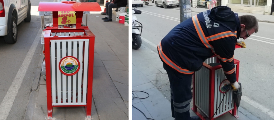 Yeni modern çöp kovalarının şehrimizin estetik yapısına güzel bir görünüm kazandırmanın yanı sıra caddelerin temizliğine de ayrı bir önem kattığını belirten İlkadım Belediye Başkanı Necattin Demirtaş, ” İlçemizde eskiyen çöp kutular sökülerek yenileriyle değiştirilirken, bir yandan da yeni çöp kovaları da monte ediliyor. Belli aralıklarla yerleştirilen kovalar caddelerin temizliğine ayrı bir önem katıyor. Kaldırımlara vidalarla sabitlenen kutuların içinde biriken çöpler, gün içinde sık sık boşaltılarak, toplama merkezine taşınıyor.