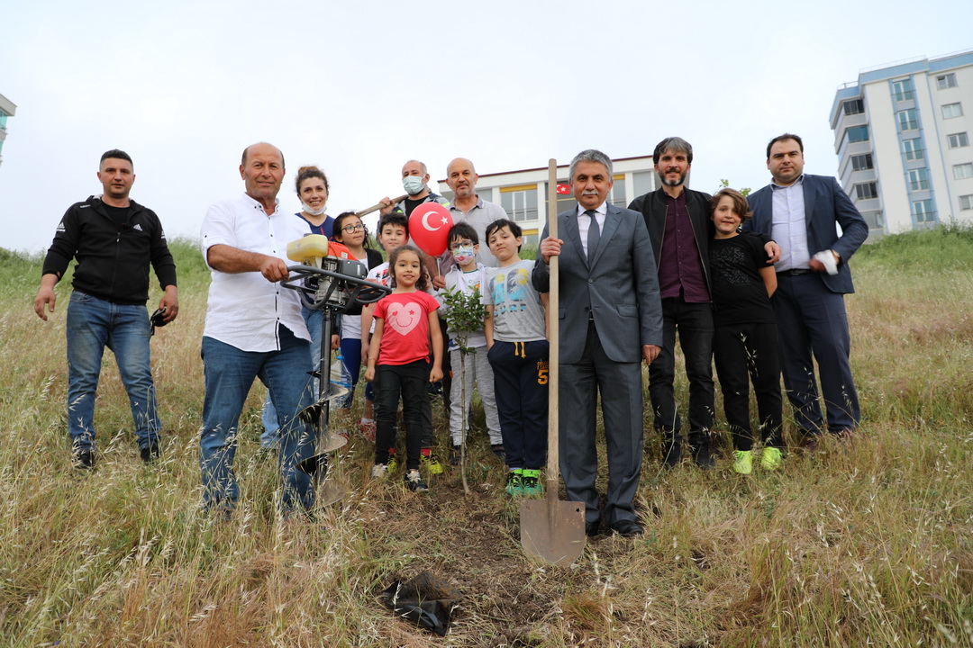 İlkadım ilçesi Karasamsun Mahallesi’nde bulunan Fatma Hatun Sitesi’nde oturan vatandaşlar, temin ettikleri 42 fidanı kendi elleriyle diktiler. Sitenin çevresine bulunan dik yamaca 42 adet ağaç fidanı diken site sakinleri, diktikleri fidanlara çocuklarının isimlerini verdiler. Çocuklar bir yandan toprak ile oyun oynarken diğer taraftan fidan dikimi yaptı. Renkli görüntülerin ortaya çıktığı fidan dikiminde çocuklar, keyifli zaman geçirdi. Dikim etkinliğine katılım sağlayan İlkadım Belediyesi Başkan Yardımcısı Lütfü Coşkun ve Karasamsun Mahalle Muhtarı Hüseyin Yıldırım kendi elleriyle kazdığı toprağa adlarının yazılı olduğu fidanların dikimini gerçekleştirdiler.