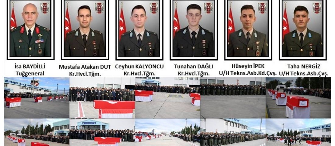 Düşen UH-1 tipi helikopterde bulunan Tuğgeneral İsa Baydilli (52), Astsubay Kıdemli Çavuş Hüseyin İpek (26), Teğmen Mustafa Atakan Dut (24), Teğmen Tunahan Dağlı (24), Teğmen Ceyhun Kalyoncu (25) ve Astsubay Çavuş Taha Nergis (24) hayatını kaybetti. Isparta İl Jandarma Komutanlığı öncülüğünde, Süleyman Demirel Havalimanı’nda düzenlenen uğurlama töreni saat 10.00’da başladı. Saygı duruşunun ardından şehitlerin öz geçmişleri okundu. , Isparta İl Müftüsü Muharrem Biçer’in yaptığı dua sonrası şehitlerin naaşları, silah arkadaşları tarafından helikoptere konularak memleketlerine uğurlandı. Tören esnasında şehitlerin yakınları ve Ispartalı vatandaşlar gözyaşlarını tutamadı.