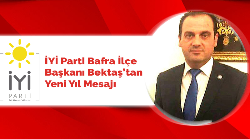 İYİ Parti Bafra İlçe Başkanı Zafer Bektaş; “2019 yılının güçlü, geleceğe güvenle bakan, mutlu, huzurlu, yönetimde ve ekonomide istikrarı yakalamış Türkiye’ye ulaşma yolunda yeni bir başlangıç oluşturmasını temenni ediyoruz” dedi.