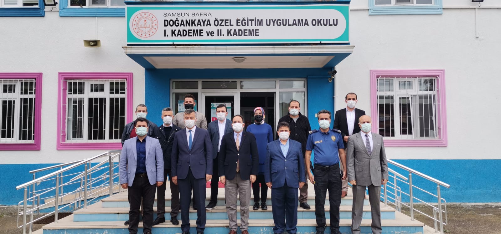 Kaymakam Cevdet Ertürkmen, Kurum Amirleri ile birlikte, İlçemize bağlı Doğankaya Mahallesinde bulunan Bafra Doğankaya Özel Eğitim I. ve II. Kademe Uygulama Okulu’nu ziyaret etti.