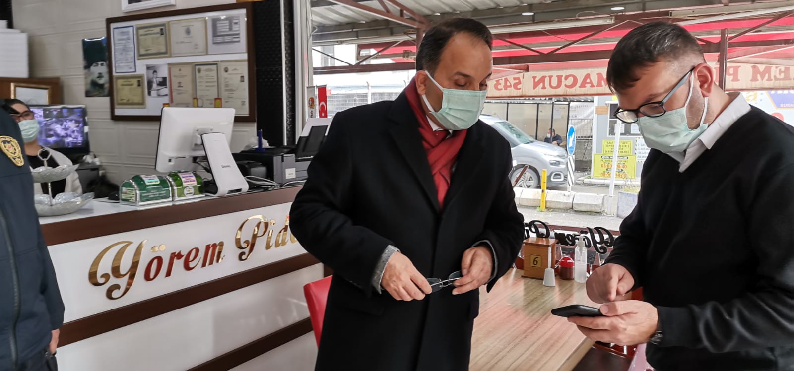 Kaymakam Cevdet Ertürkmen, beraberindeki ekiple birlikte, İlçemizde Covid-19’un yayılımını kontrol altında tutmak amacıyla Dinamik Denetim Modeli çerçevesinde marketler, restoranlar, kafeler, meydan ve caddeler başta olmak üzere tüm alanlarda denetimlerde bulundu.