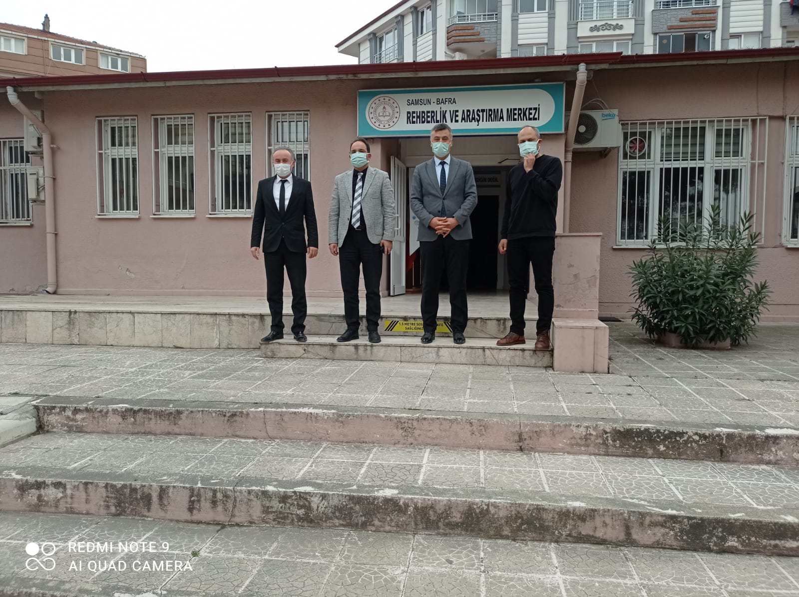 Kaymakam Cevdet Ertürkmen ve İlçe Milli Eğitim Müdürü Mehmet Ali Katipoğlu ile birlikte Bafra Rehberlik ve Araştırma Merkezi (RAM) Müdürlüğü’nü ziyaret ederek, müdür İlker Karakaya’dan araştırma merkezinin çalışmaları hakkında bilgi aldı.