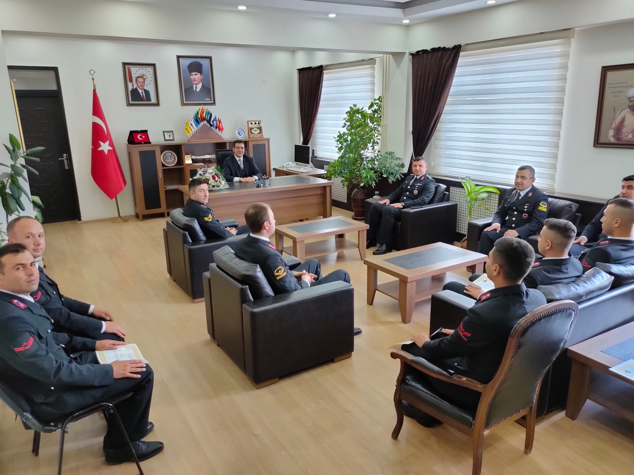 Jandarma Teşkilatının 183. Kuruluş Yıldönümü sebebiyle İlçe Jandarma Komutanı Üsteğmen Samet Kuruçelik ile astsubay ve uzman çavuşlardan oluşan heyeti makamında kabul etti.