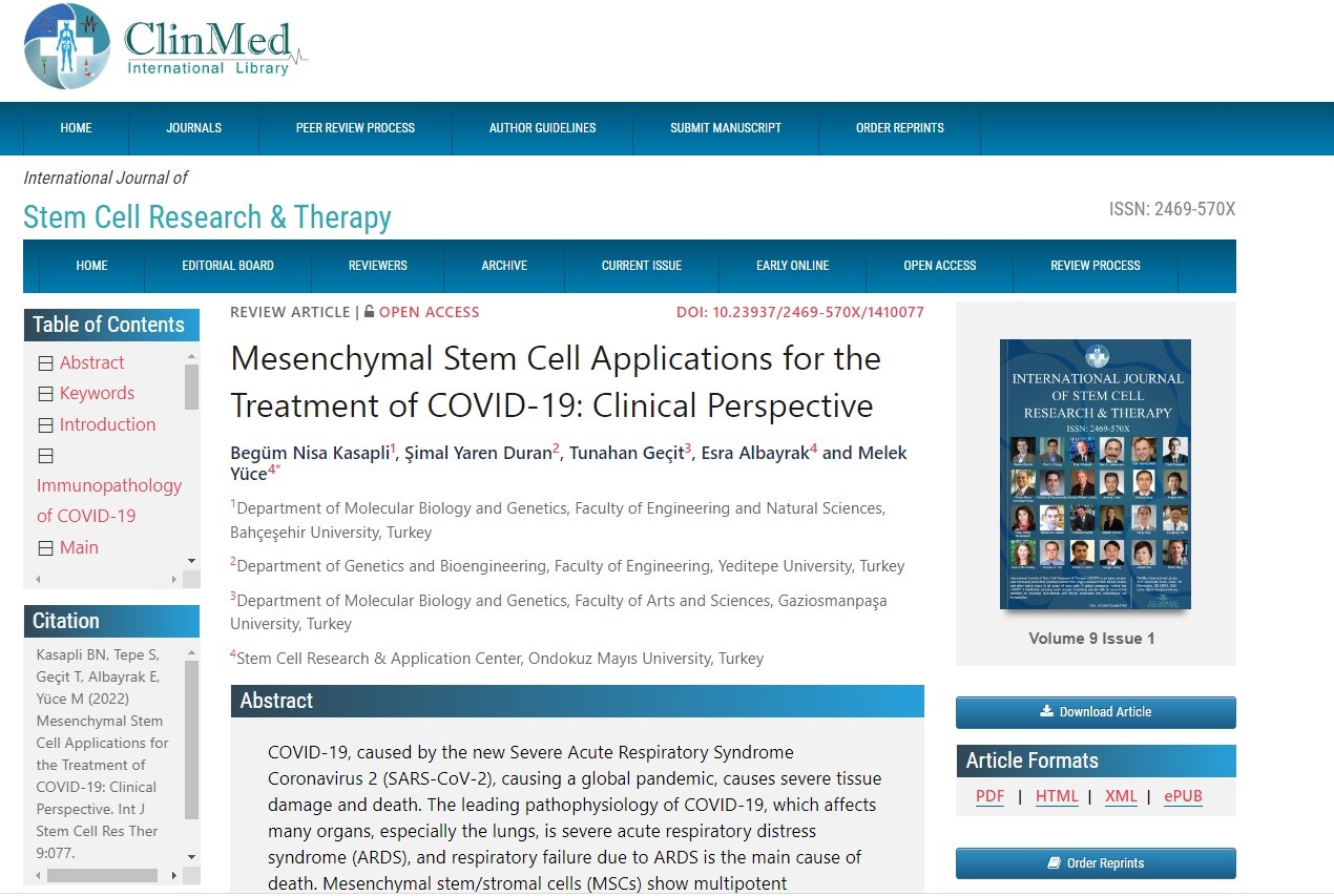 Aktif olarak 2019 yılı sonlarında faaliyetlerine başlayan mevcutta 6’ınsı TÜBİTAK, 2’incisi Gilead Sciences (Sanayi) ve 7’si BAP tarafından desteklenen 15 proje ile Ar-Ge çalışmalarına devam eden Ondokuz Mayıs Üniversitesi Kök Hücre Uygulama ve Araştırma Merkezi (KÖKMER), kurum içi ve kurum dışı işbirlikleri ile ivmesini yükseltmeye devam ediyor.Proje potansiyelinin artmasıyla birlikte 2021 yılından itibaren yaz stajı için öğrenci kabulüne başlayan KÖKMER, akademisyenlerin destekleri ile ilk staj öğrencilerine dönemin önemli sorunlarından olan Covid-19 tedavisinde kök hücre uygulamaları hakkında derleme makale yazmaları konusunda yol gösterici oldu. Staj öğrencileri Begüm Nisa Kasaplı, Şimal Yaren Duran, Tunahan Geçit tarafından hazırlanan Öğr. Gör. Dr. Esra Albayrak ve Öğr. Gör. Dr. Melek Yüce tarafından geliştirilerek düzenlenen ‘’Mesenchymal Stem Cell Applications for the Treatment of Covid-19: Clinical Perspective’’ başlıklı derleme makale Uluslararası Statüde olan International Journal of Stem Cell Research & Therapy dergisinden kabul alarak yayımlandı.‘ÖĞRENCİLERİN AKADEMİK EĞİTİMLERİNİ VE GELİŞİMLERİNİ ÖNEMSİYORUZ’KÖKMER’in yaptığı çalışmalar hakkında değerlendirmelerde bulunan Merkez Müdürü Öğr. Gör. Dr. Melek Yüce, ‘’Merkez olarak Ar-Ge faaliyetleri kadar öğrencilerin akademik eğitimlerini ve gelişimlerini de çok önemsiyoruz. Şu ana kadar Merkezin desteklediği 4 lisans öğrenci projesi TÜBİTAK’dan, 1 lisans öğrenci projesi BAP’dan destek aldı. Aynı zamanda Merkezde staj yapan öğrencilere laboratuvar çalışmaları konusunda deneyim kazanmalarını sağlarken eş zamanlı olarak araştırma yapma, akademik literatür tarama ve akademik makale yazımı konusunda da destek vererek akademik gelişimlerine katkıda bulunmayı hedefliyoruz. Merkezde 3 yıl gibi kısa süre içerisinde önemli sayıda proje çalışmalarının yanında kurum içi ve kurum dışı akademisyenlere, araştırmacılara farklı faaliyet alanları konusunda da hizmet vermeye devam ediyoruz. Bu konuda çalışma arkadaşlarıma da özverili ve istekli çabalarından dolayı çok teşekkür ediyorum” şeklinde konuştu.Köksal ÖNER