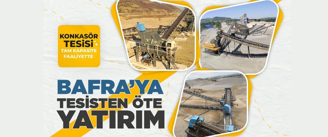Bafra Belediyesi tarafından altyapı maliyetlerinin düşürülmesi amacıyla Beton Santralinden sonra bölgede sayılı belediyelerde bulunan konkasör tesisini de ilçeye kazandırdı.